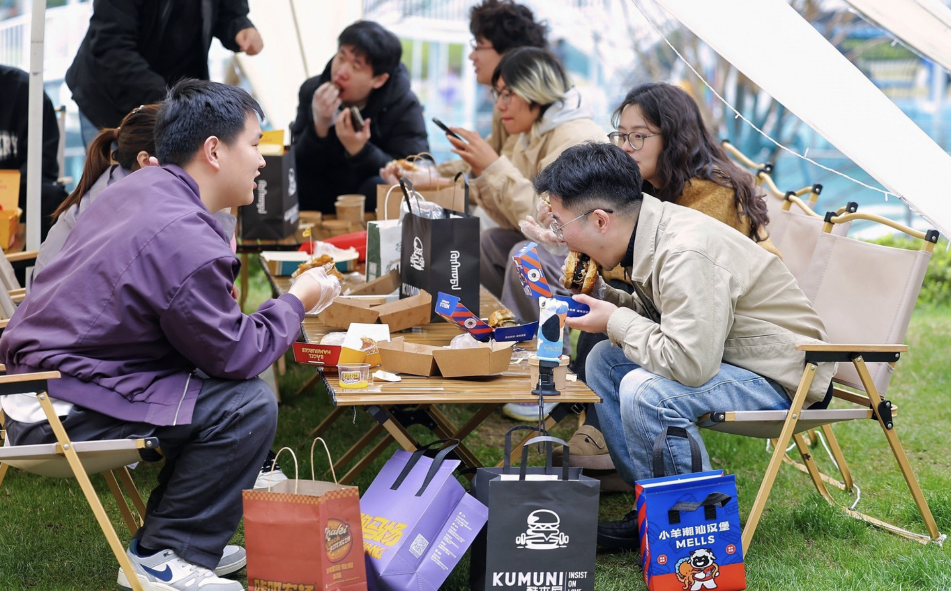“这里不单调,能发挥的空间很大。”李晨笑表示,每到周末,现场就挤满了年轻人,大家铺着野餐垫吃汉堡、在樱花树下聊天畅谈,氛围感拉满,也让汉堡节成为武汉年轻人的新晋打卡地。
