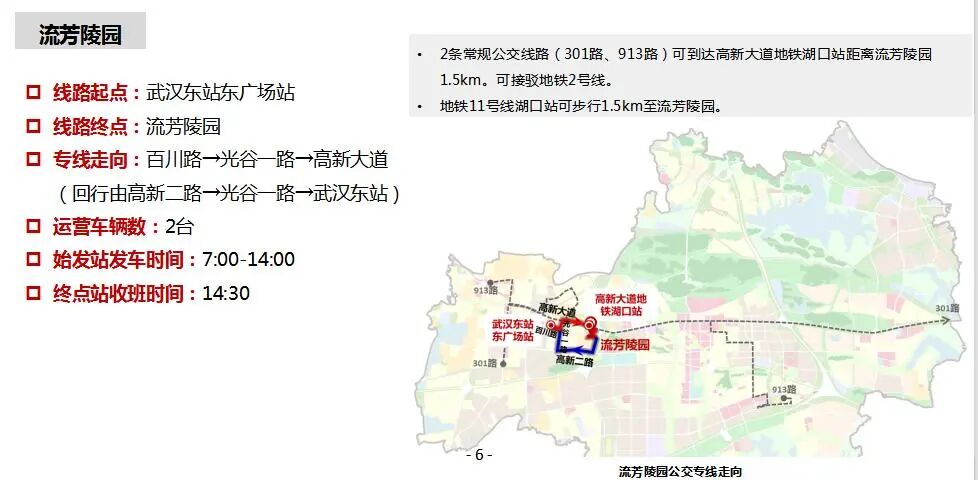 公共交通:公交车301路、913路至高新大道地铁湖口站。公交接驳专线为武汉东站东广场至流芳陵园。地铁可乘2号线转11号线→高新大道湖口站。