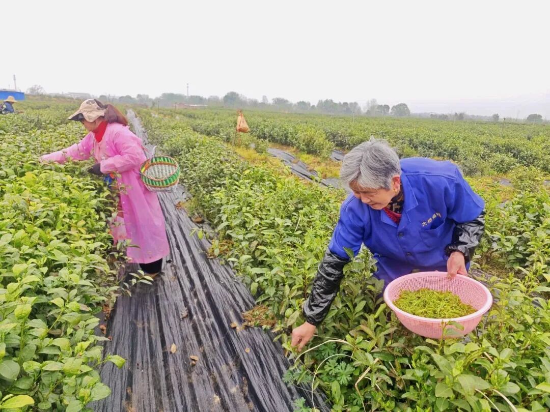 茶园里,几位村民一边采茶一边聊着家常。从开园到现在,周边不少乡亲都在这儿找到了活干,采一天茶,挣一天钱,守着家门口就把腰包鼓起来了。采茶用工全是村里人,从采摘到后期管护,一片绿叶让大家在家门口有活干、有钱赚,这大概就是乡村振兴最实在的样子。