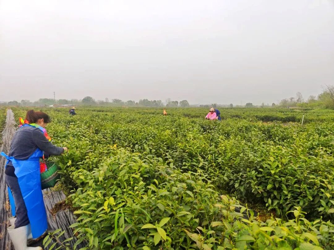 春风一吹,茶芽就醒了,湖北孝感孝南县杨店这片新茶园终于等来了头采。