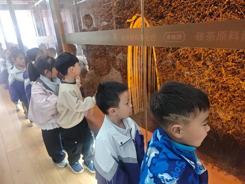活动中,师生们先后参观中国青砖茶未来展示馆,溯源“万里茶道”历史;在高标准生态茶园里,学习“一芽二叶”采摘标准;探秘智能化生产车间,见证茶叶经自动化渥堆、蒸压等工序的蜕变,感受非遗技艺与现代智造的碰撞。研学尾声,孩子们品尝醇厚青砖茶,体悟传统茶文化魅力。