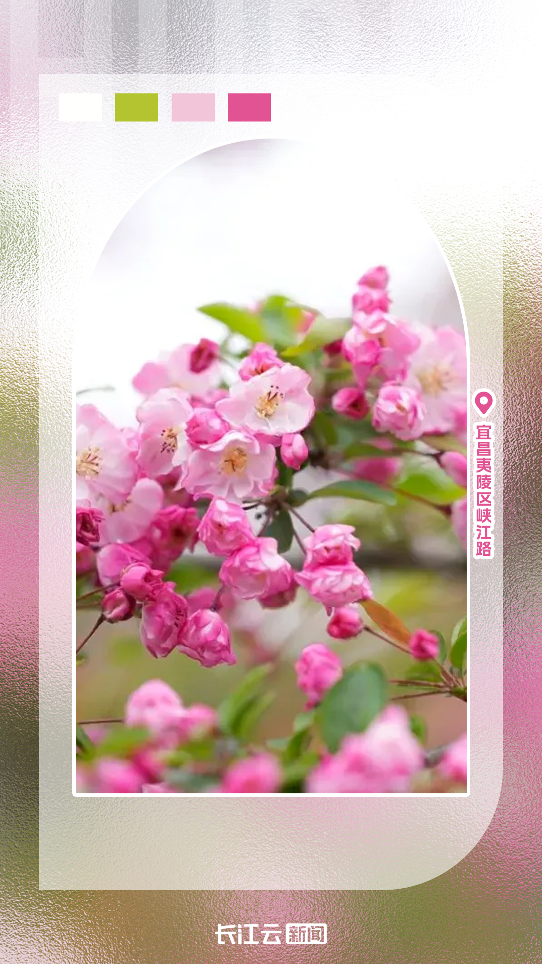 宜昌夷陵区峡江路:海棠沿江绽放,繁花映长江、青山,步道穿花间,江风携香,拍照氛围感拉满。