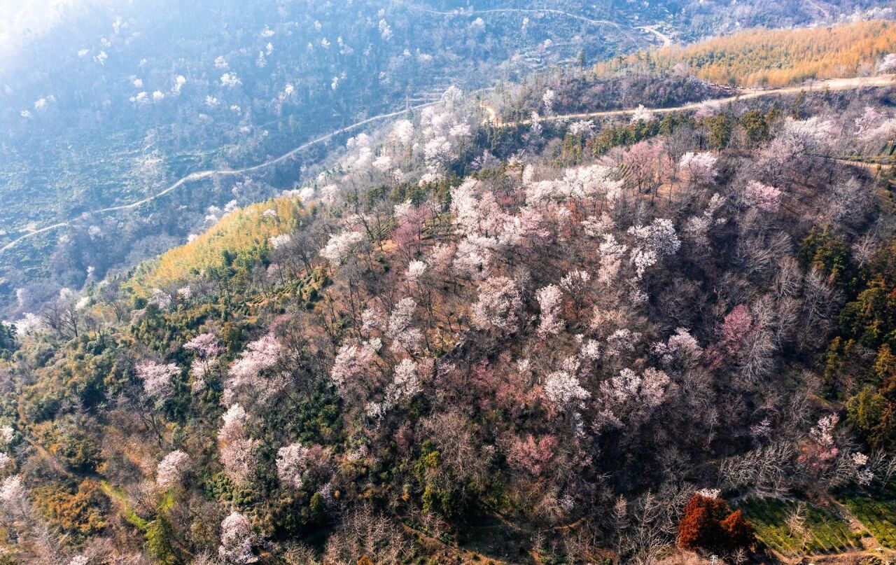 黄冈红安天台山:万亩樱花铺至山顶,樱雨纷飞,兼具自然之美与红色文脉,赏樱悟岁月韵味。