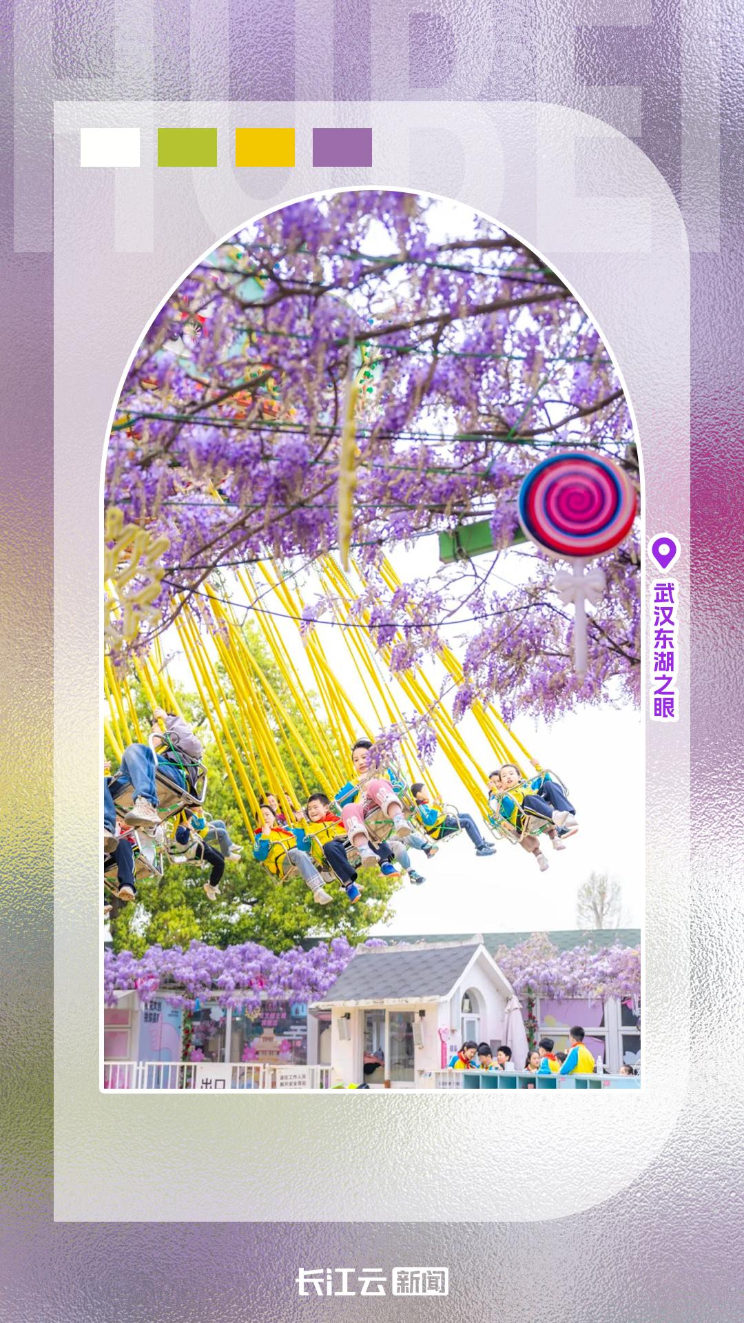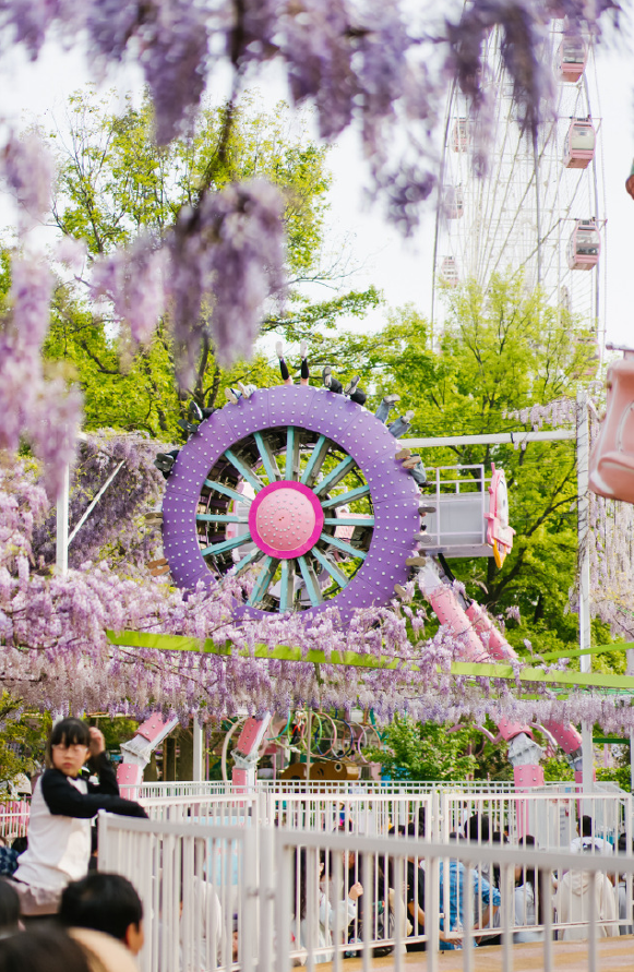 武汉东湖:3000㎡紫藤花如紫色瀑布,与东湖之眼摩天轮构成浪漫画卷,适合情侣、闺蜜打卡。