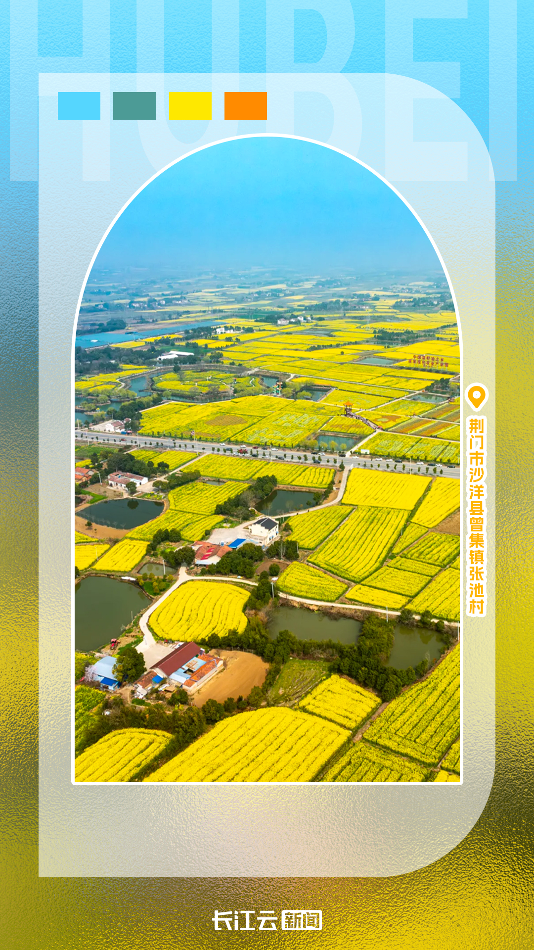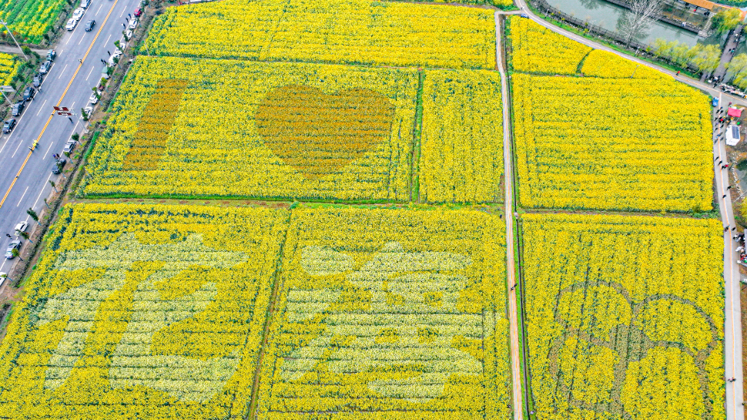 荆门市沙洋县曾集镇张池村:80多万亩连片种植,坐拥“全球最大连片油菜花海”美誉,金色花海壮阔动人。