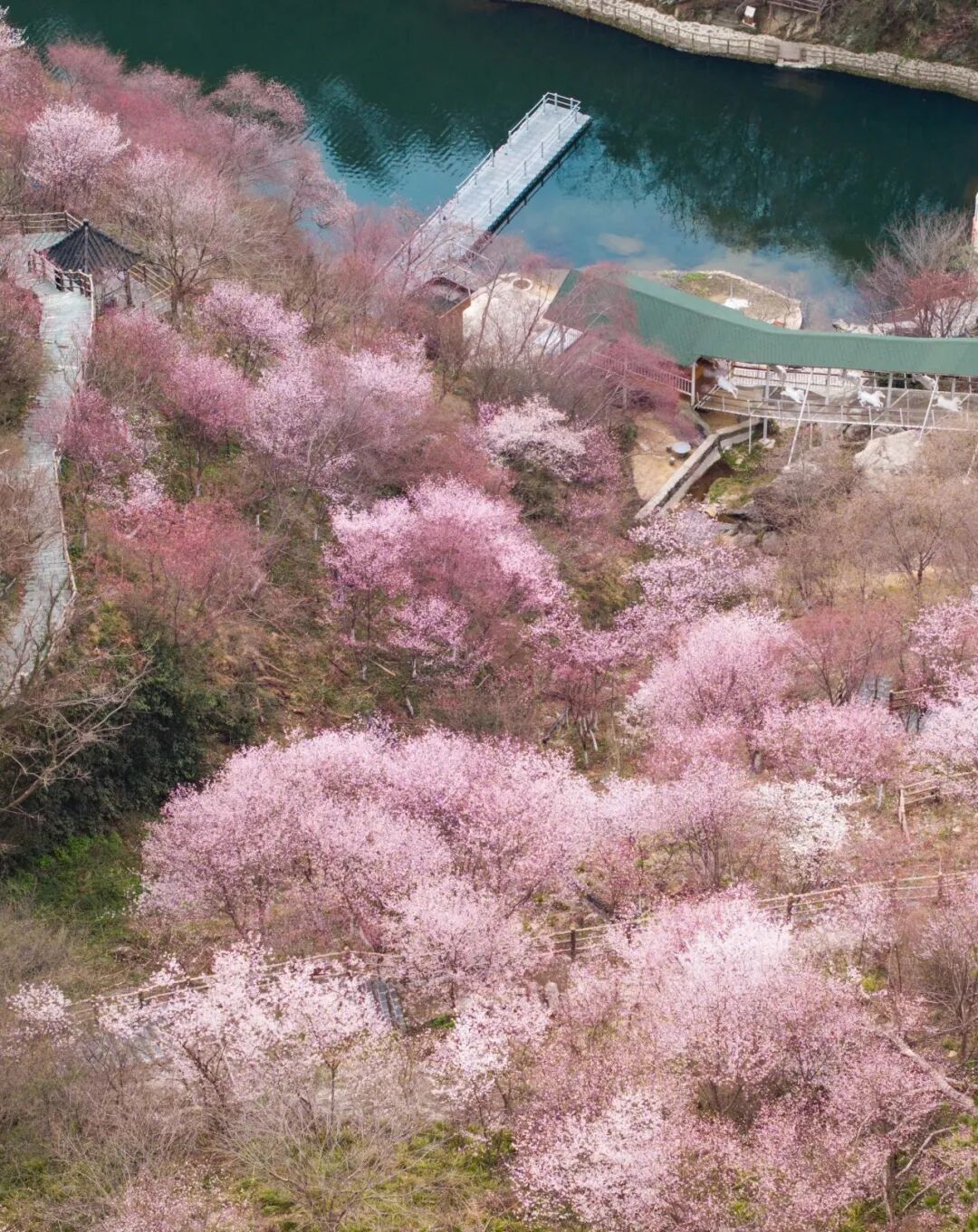 襄阳枣阳熊河风景区:40万株桃树依偎水库岸边,花瓣映碧水,兼具浪漫与灵动,漫步惬意治愈。