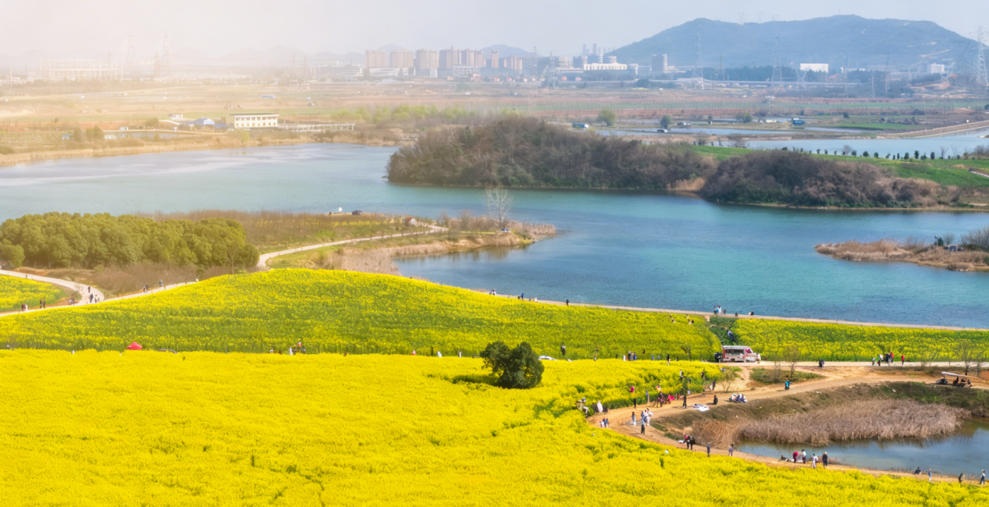 武汉经开状元湖油菜花海:200多亩油菜花沿湖畔铺展,湖光映金浪,近郊人少景静,漫步、露营、拍照皆可。