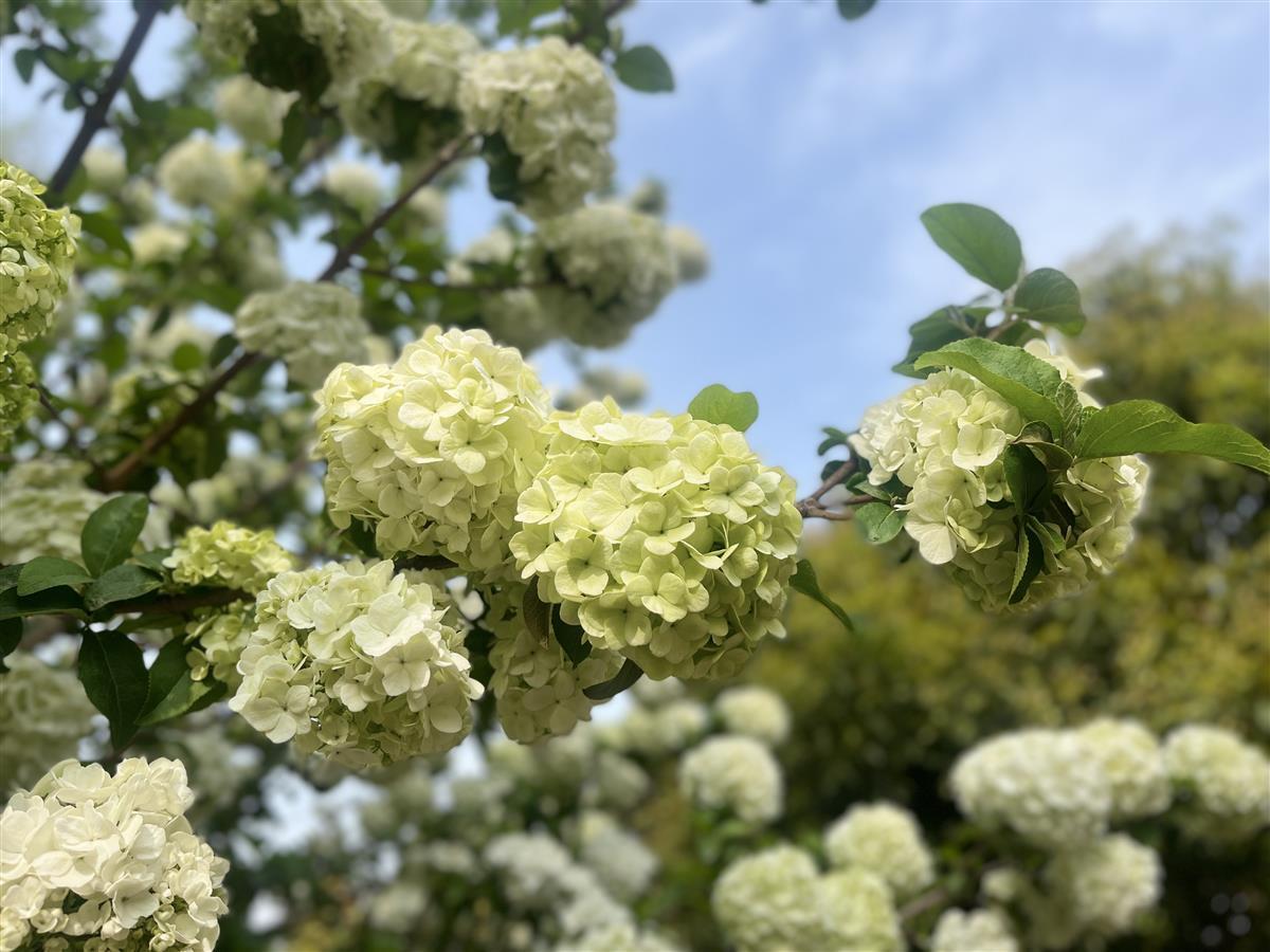 皎白的木绣球,清明节前后蓄势待发,盛放后缀满枝头,清幽雅致,适合慢赏。