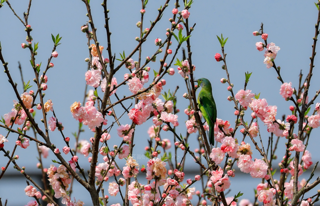 飞鸟轻栖花枝,花香漫过山野