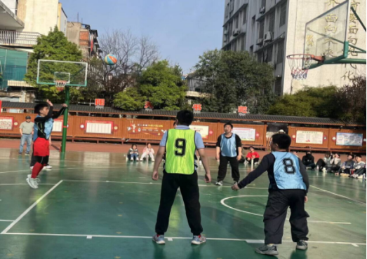 随着裁判一声哨响,比赛正式开始。赛场上,球员们你争我夺、攻防有序,运球、传球、上篮一气呵成。每一次精准配合,每一次漂亮投篮,都引得场边同学高声喝彩,加油声、欢呼声此起彼伏。场边啦啦队挥舞彩球,节奏鲜明地喊出班级口号;替补队员紧盯赛场,随时准备上场支援。汗水浸湿球衣,却浇不灭少年眼中的热情。一个急停跳投命中,全场跃起欢呼——这不仅是比分的较量,更是协作、坚持与突破自我的真实写照。