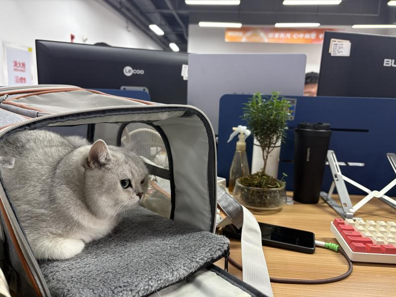 员工小李经常带着自家猫咪“小8”上班,小家伙安静地趴在她电脑旁,偶尔伸个懒腰。“带着它工作效率反而更高,因为你会想着赶紧忙完去陪它。”