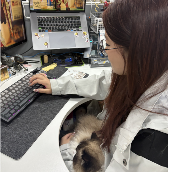 公司里最出名的是一只缅因猫“一休”。它不怕人,经常大摇大摆走进会议室,甚至趴在会议桌上“列席”会议。员工涂先生的电脑是“一休”最喜欢的午睡点,“它像小孩一样,经常会跑过来一起玩,我们也喜欢等着它过来。”