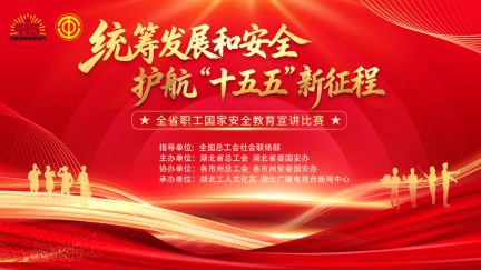 今年全国两会强调,统筹发展和安全是“十五五”开局的核心遵循,要以高水平安全护航高质量发展。在今年第11个4.15全民国家安全教育日到来之际,荆楚大地上一场关乎国家安全的重要赛事即将拉开帷幕,“统筹发展和安全 护航‘十五五’新征程——全省职工国家安全教育宣讲比赛”决赛即将在湖北工人文化宫盛大开启!