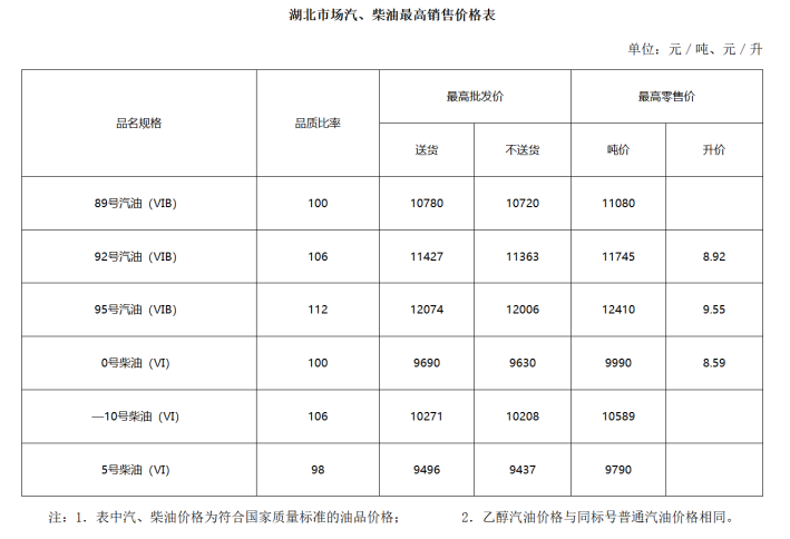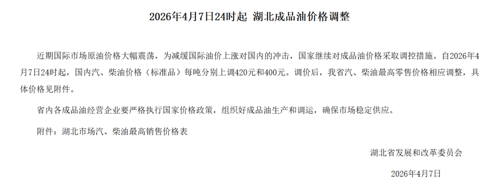 自4月7日24时起省内92号汽油、95号汽油、0号柴油每升分别上调0.34元、0.37元、0.34元。调控后,每升分别涨至8.92元、9.55元、8.59元,比按照成品油价格机制计算分别少调0.30元、0.32元、0.32元。