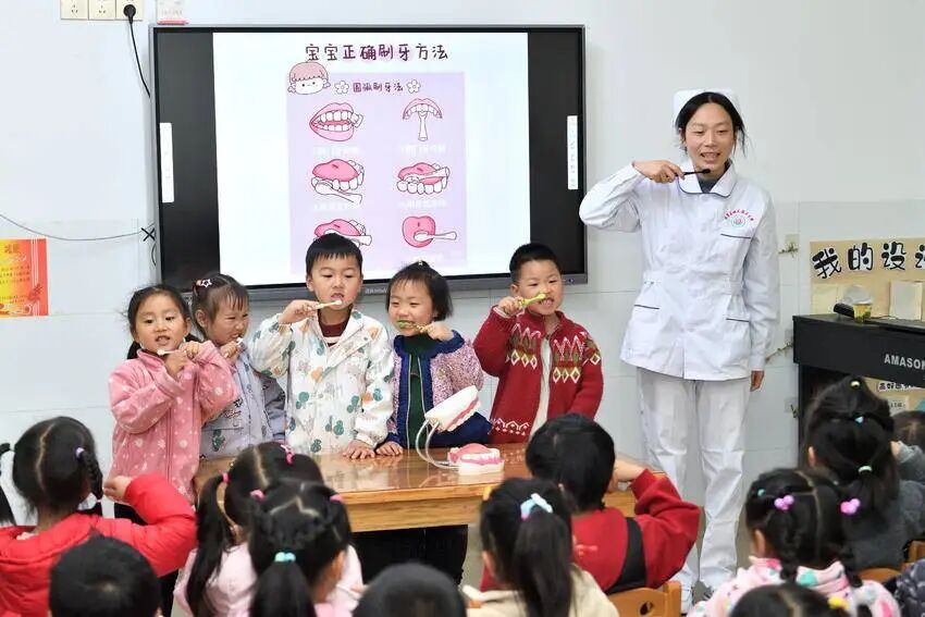 医护人员还借助牙齿模型,直观形象地演示正确刷牙方式,用通俗易懂的语言讲解口腔保健知识,引导孩子们从小爱护牙齿、重视口腔健康。