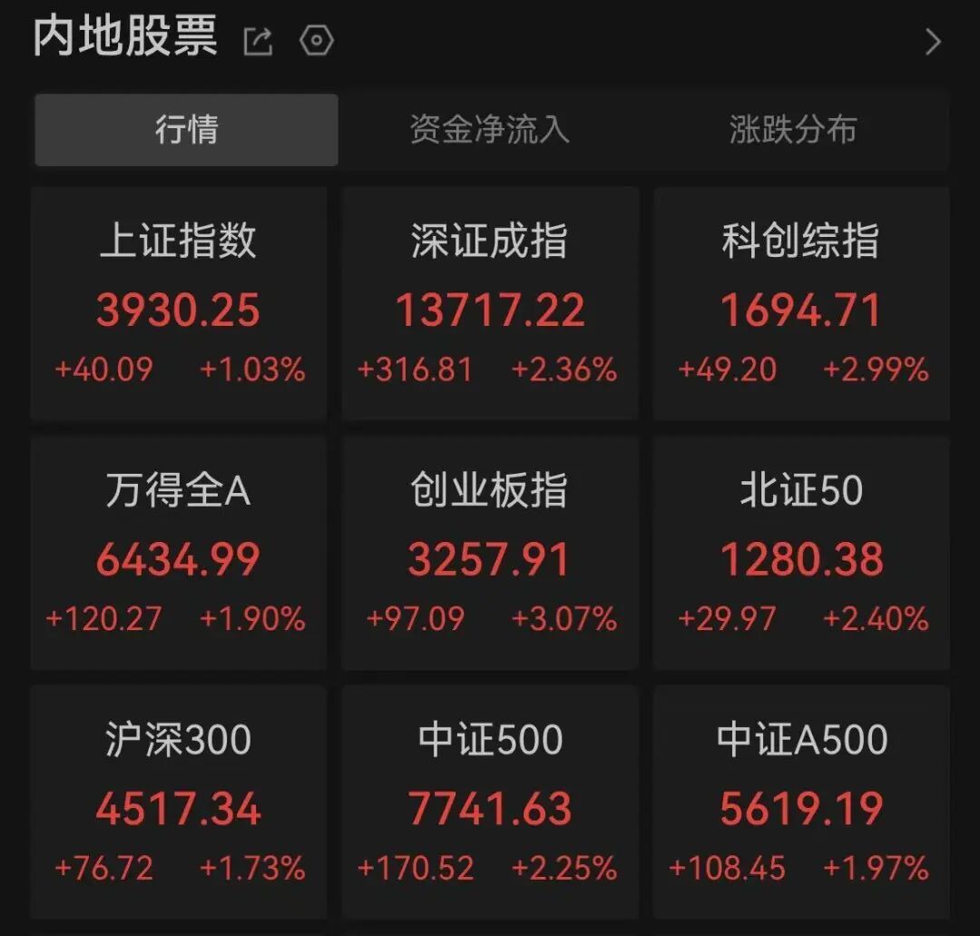 A股三大指数集体高开