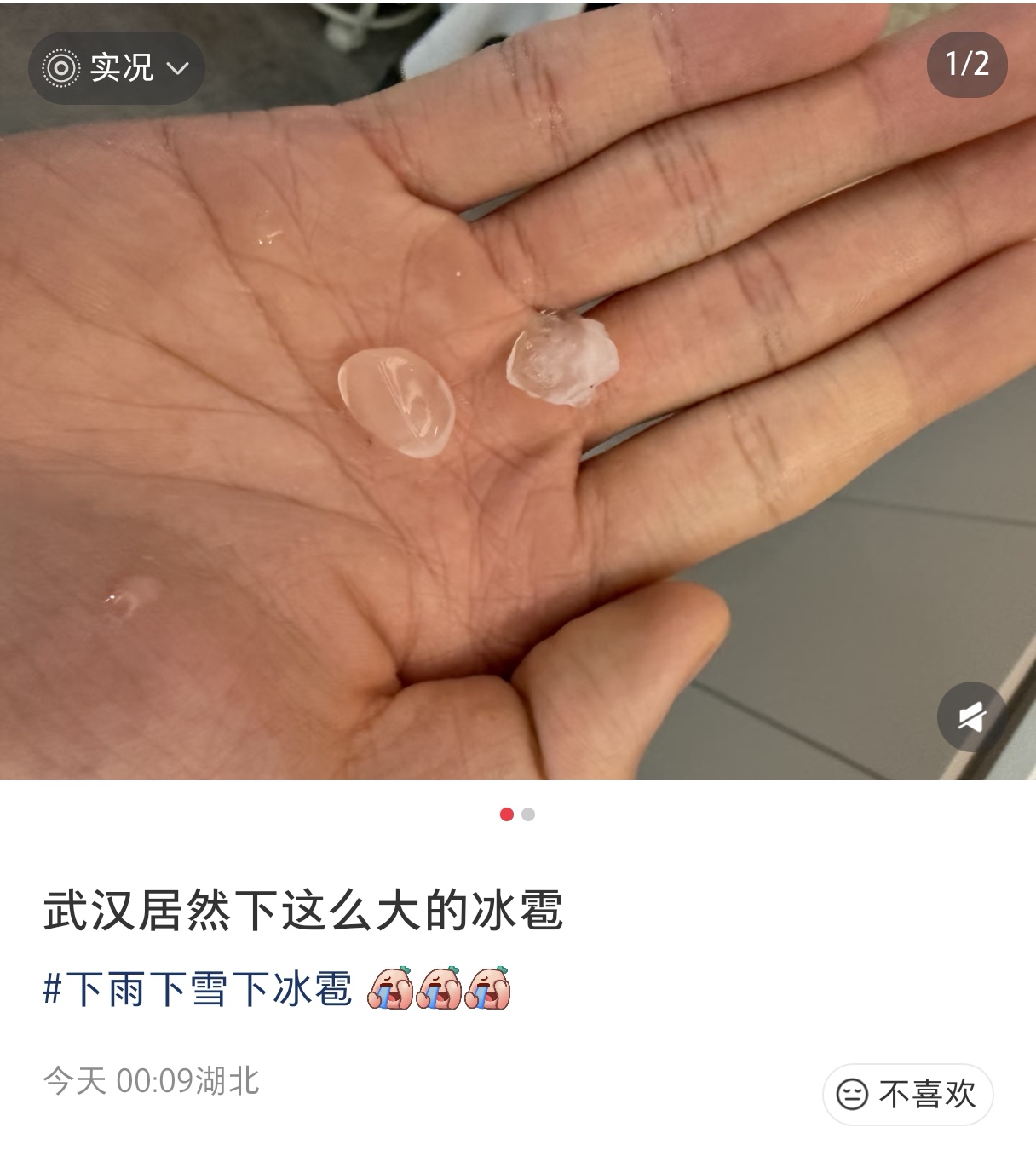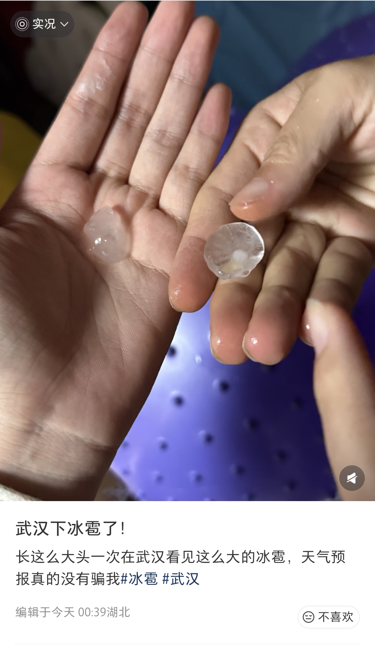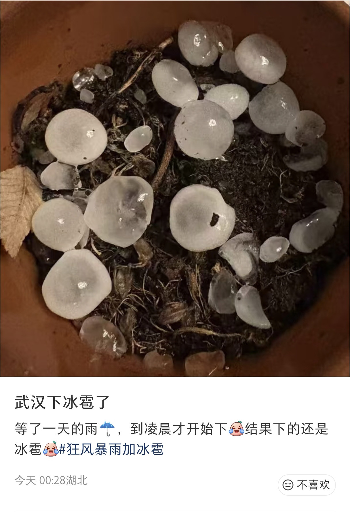 凌晨武汉炸醒式冰雹!多个城区突降“硬核弹珠”