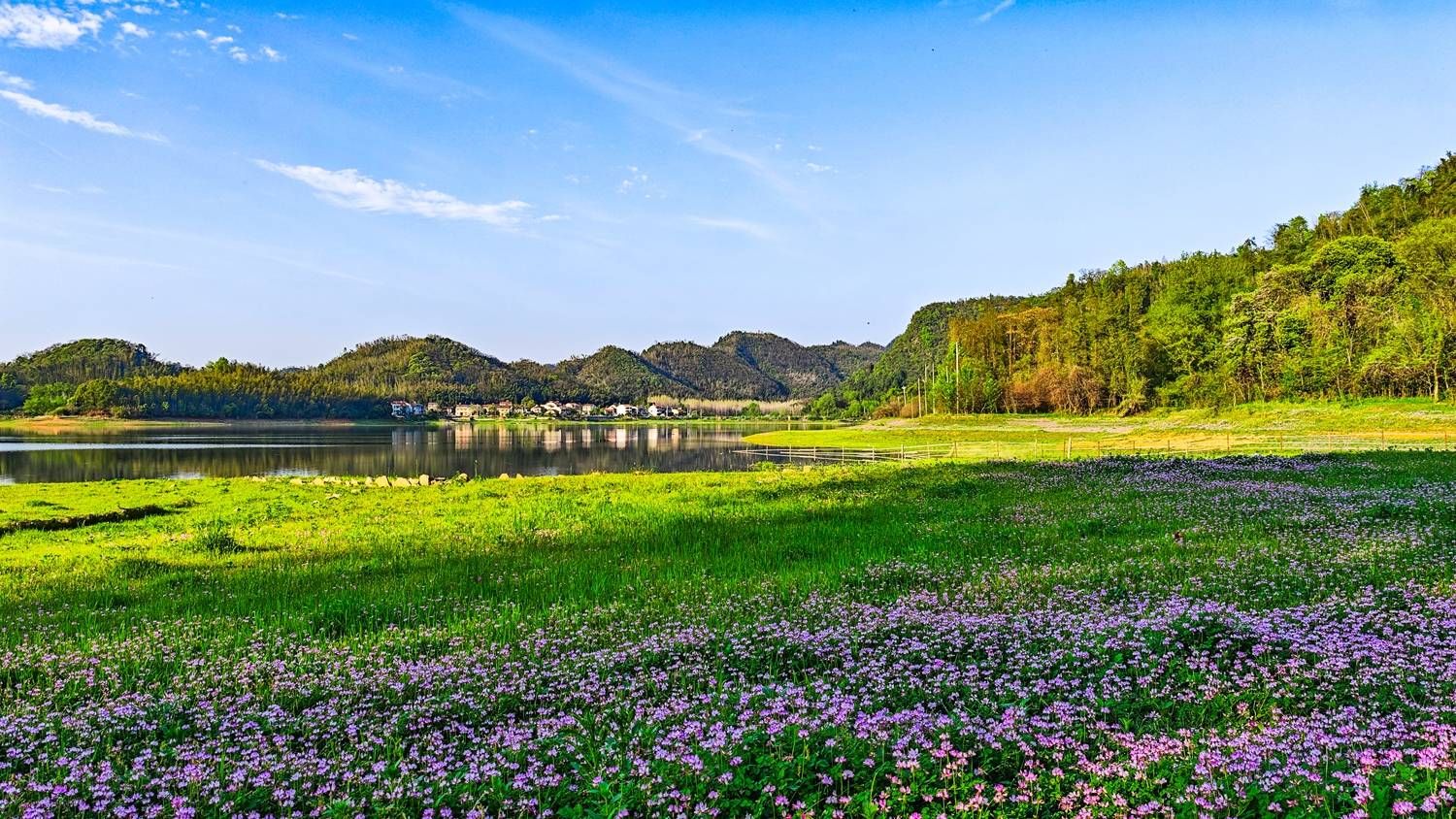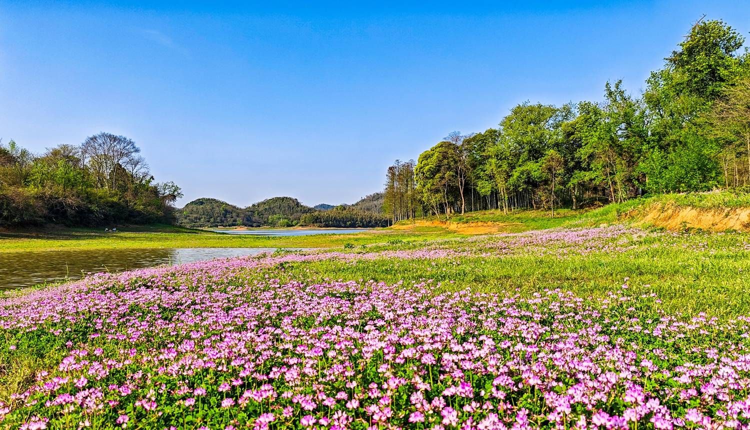 春风拂面,万物复苏。位于赤壁市的红林山林场,在暖阳与细雨的滋养下,漫山苍翠渐次舒展,满目新绿绵延不绝,勾勒出一幅清新治愈的春日生态画卷。湖畔、林间、草地之上,紫云英肆意绽放,粉紫相间的小花密密麻麻地铺展,宛如给大地披上一层梦幻的紫色绒毯。