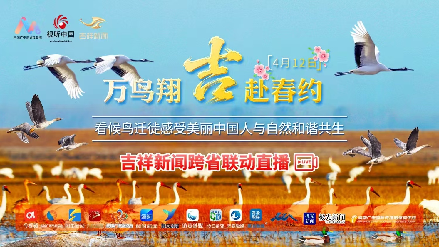 为生动展现我国生态文明建设成果、传递人与自然和谐共生理念,吉林广播电视台联动江西鄱阳湖、江苏盐城、四川雅安等候鸟迁徙关键节点城市及吉林省各市县,重磅策划推出《万鸟翔吉赴春约——看候鸟迁徙,感受美丽中国人与自然和谐共生》联动大直播。