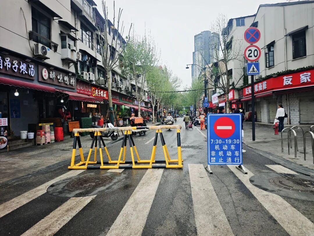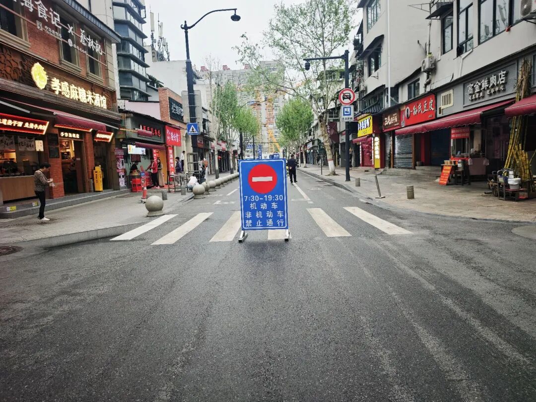 江岸区交通大队相关负责人介绍,山海关路的街道宽度与两旁建筑高度比例协调,非常适合打造成步行街。同时,周边背街小巷密集、四通八达,形成了良好的微循环路网,能有效分流车辆。加之附近居民日常出行并不依赖这条美食街主干道,为实施分时管理创造了有利条件。