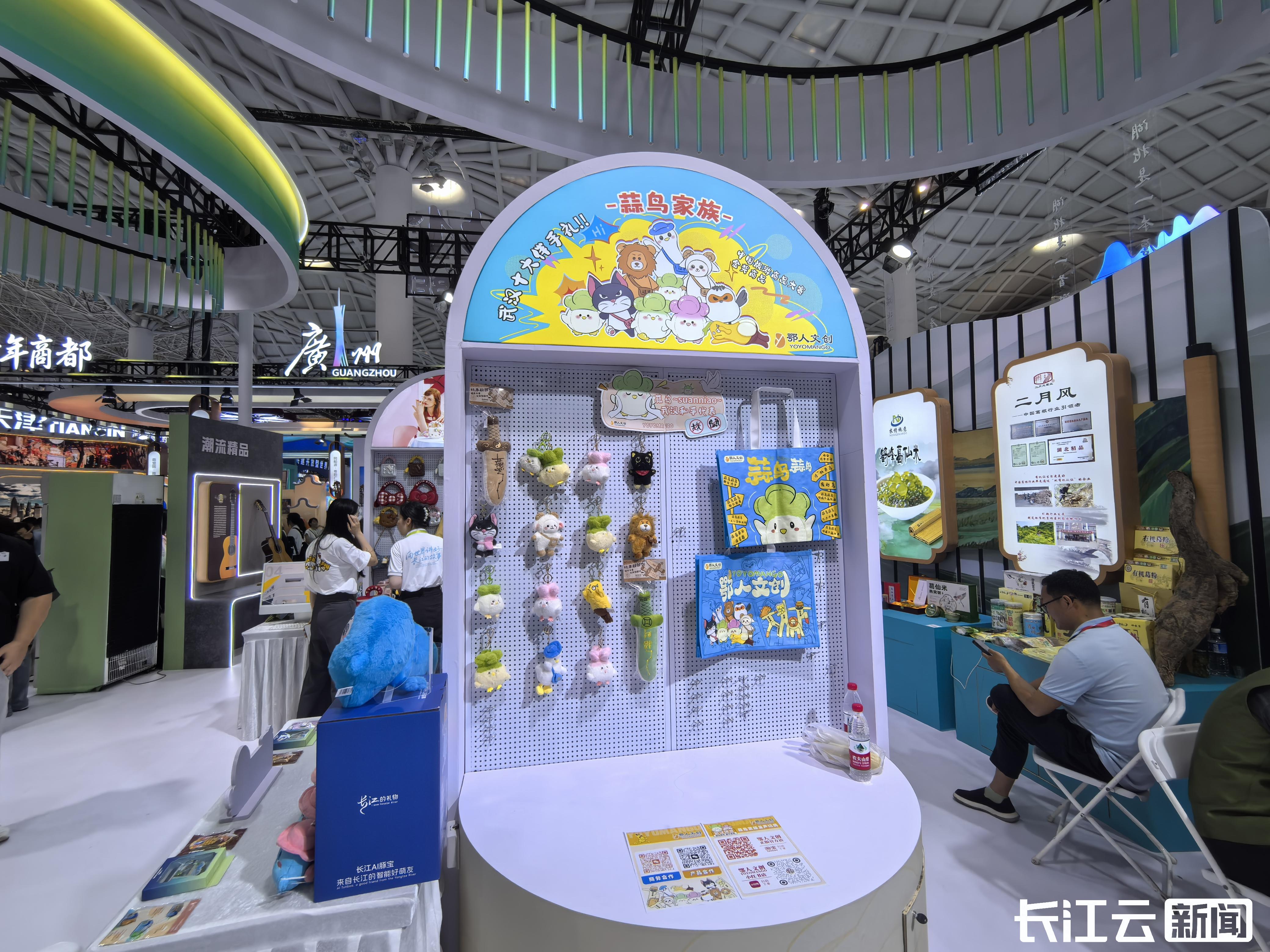 “乐玩荆楚创”板块萌趣十足。此前在网络走红的“蒜鸟”IP,此次携其家族系列毛绒玩偶从武汉来到海口。此外,湖北传统非遗精品同样吸睛——五彩斑斓的西兰卡普土家织锦、十堰绿松石雕刻作品交相辉映,AI豚宝数字人互动装置虚实结合。现场设置的非遗工坊引入恩施玉露茶艺表演,以“湖北IP+打卡场景+治愈体验”的沉浸式消费模式,向全球客商展现荆楚文创魅力。