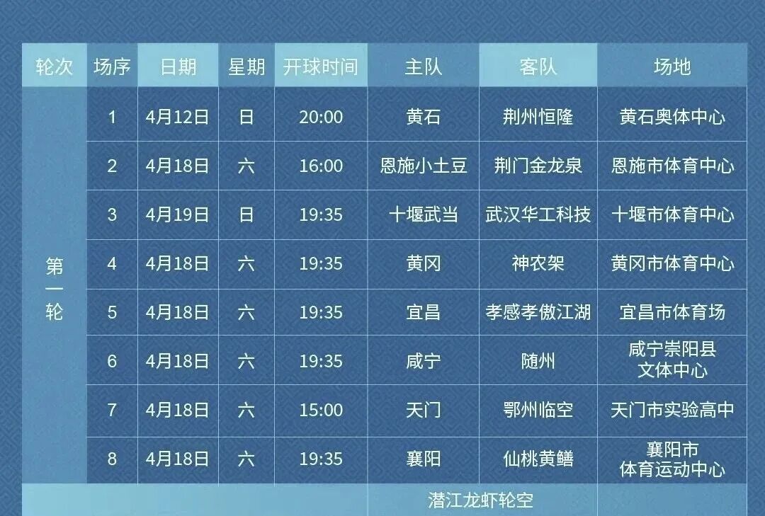(注:潜江龙虾队首轮轮空)