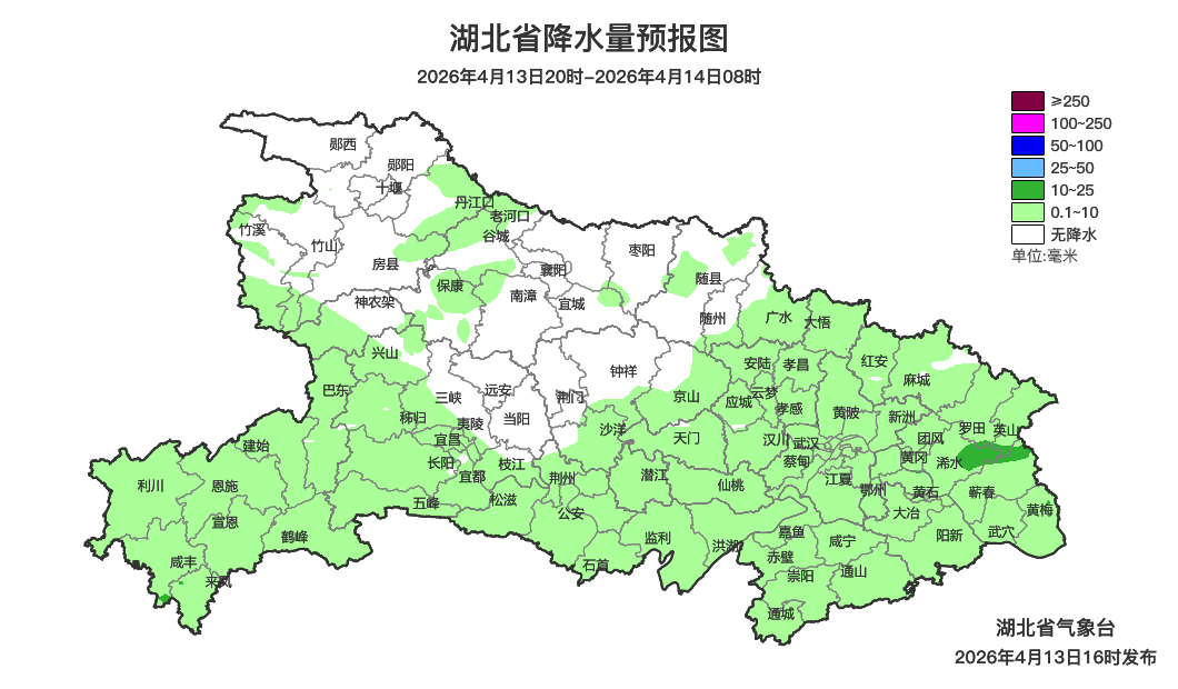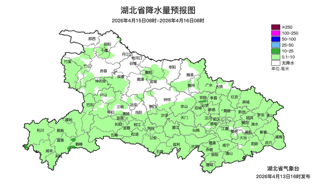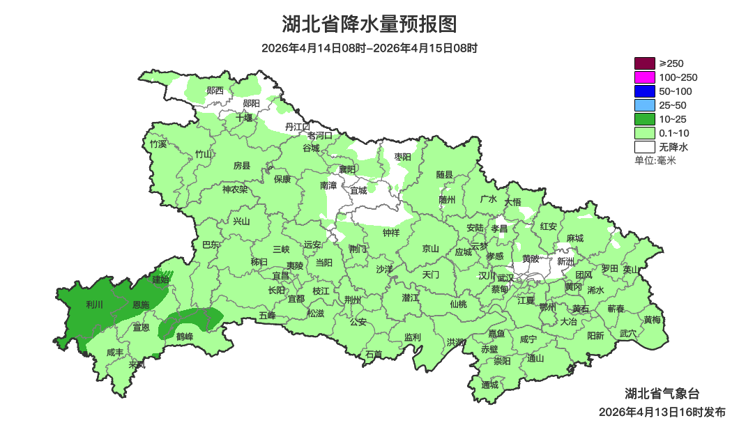 预报来源:湖北省气象台2026年4月13日16时预报