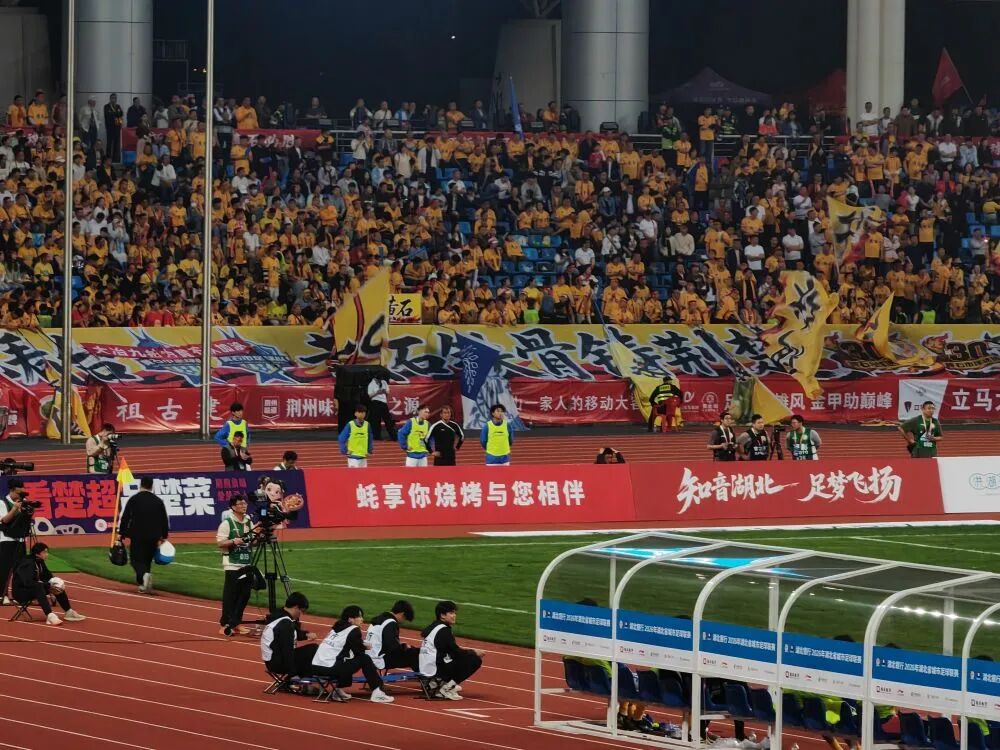 九江球迷在“楚超”赛场为黄石队加油。(组委会供图)