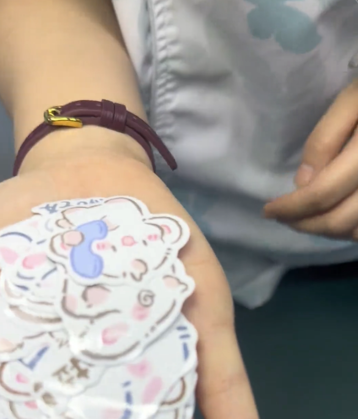 她常备卡通贴纸、玩偶暖心安抚