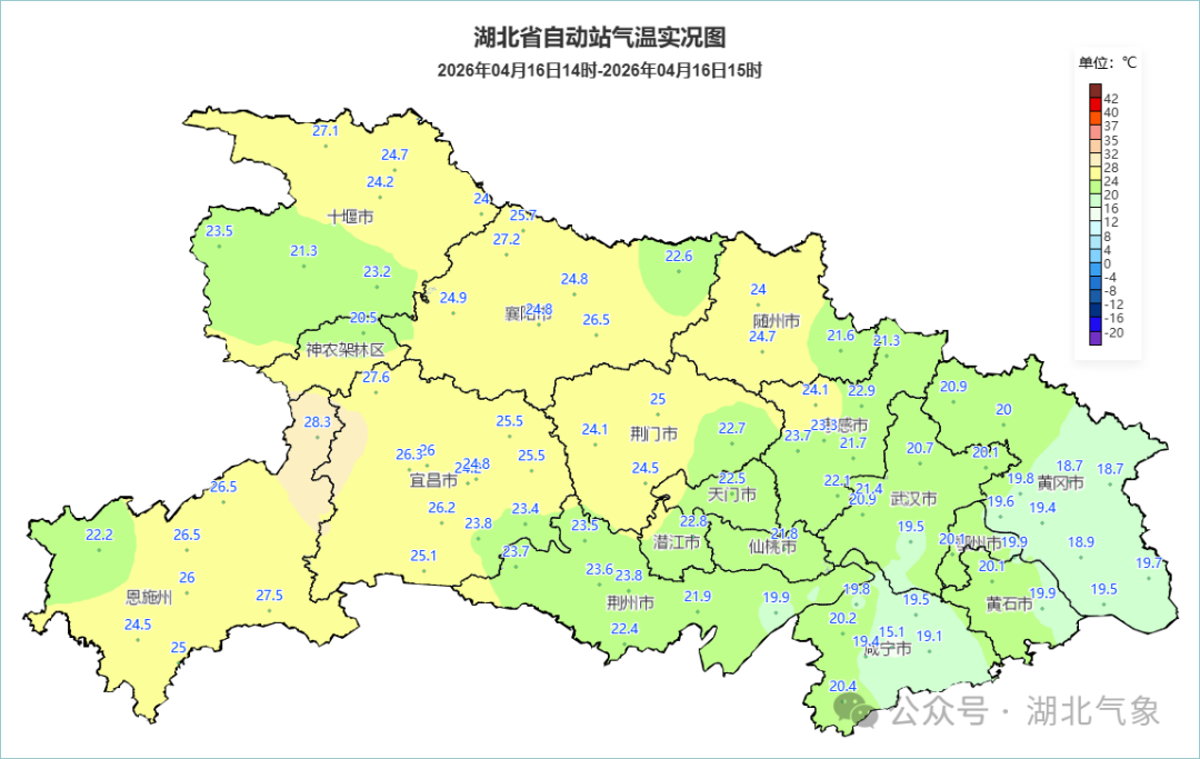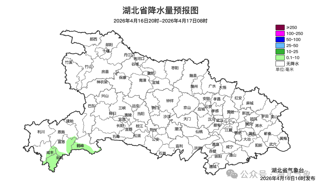 预报来源:湖北省气象台2026年4月16日16时预报