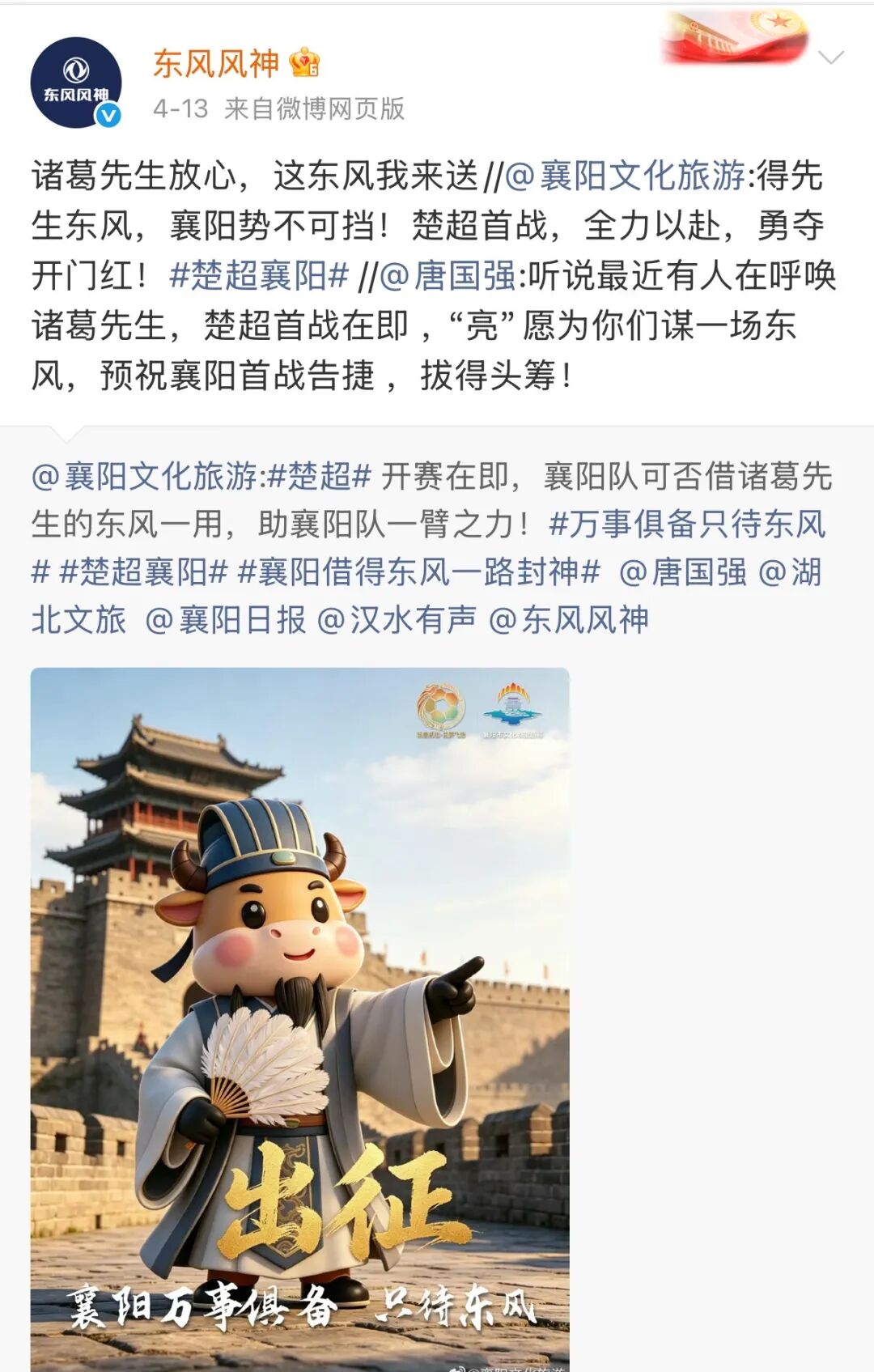 为楚超襄阳首战加油助威