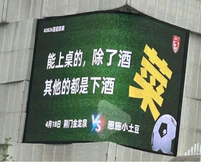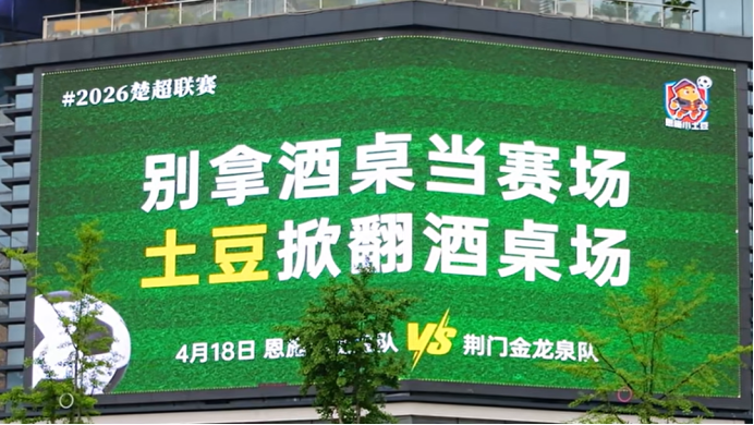 荆门与恩施赛前在城市户外大屏隔空“喊话”,“金龙泉”豪迈宣言,“小土豆”俏皮应战,官方牵头造梗、网友踊跃参与,瞬间点燃两地热情。宜昌与孝感则上演了一场“舌尖上的“楚超””——“宜昌凉虾×孝感米酒”互动甜齁全网,两地官方账号和网友频繁互动,引发全城应援。