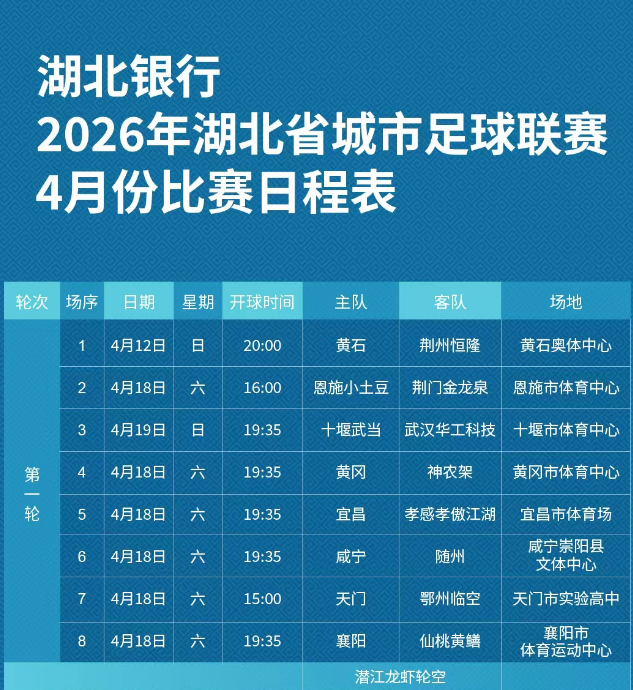 咸宁 vs 随州(4月18日19:35,崇阳县文体中心)