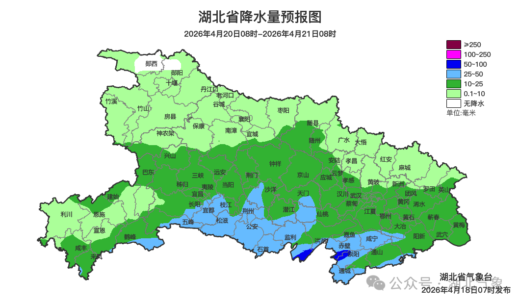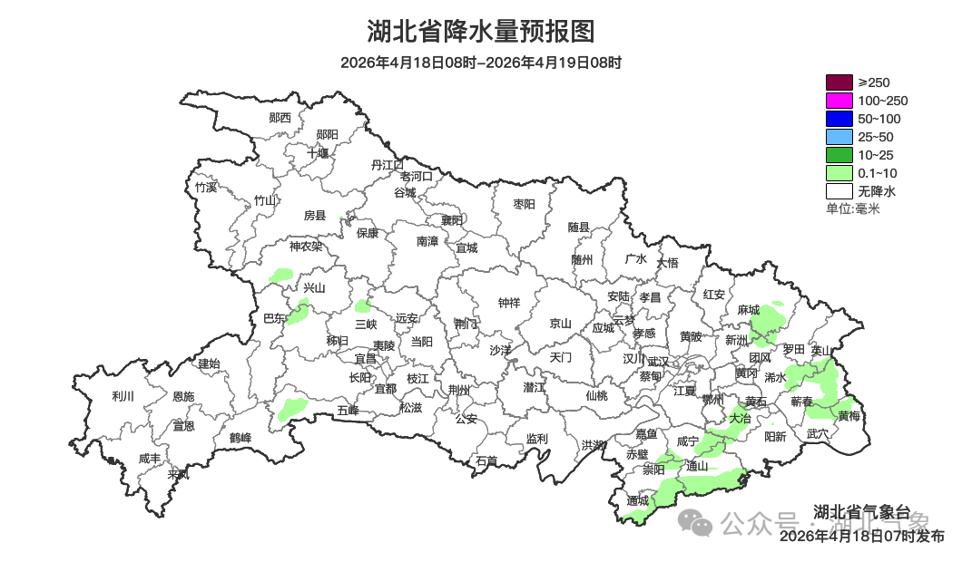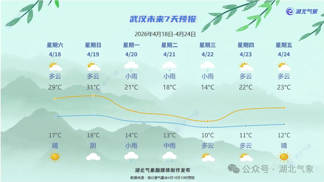 预报来源:湖北省气象台2026年4月18日08时预报