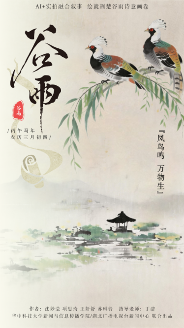 值此谷雨时节,一部由华中科技大学新闻与信息传播学院和湖北广播电视台新闻中心合作制作的水墨动画短片《谷雨春生》正式推出。这部动画短片融合荆楚文化与AI技术,以“鸟中仙子”白冠长尾雉为叙事线索,串联起从远古神农教耕到现代江汉平原插秧采茶的物候长卷,在数字时代唤醒节气之美。