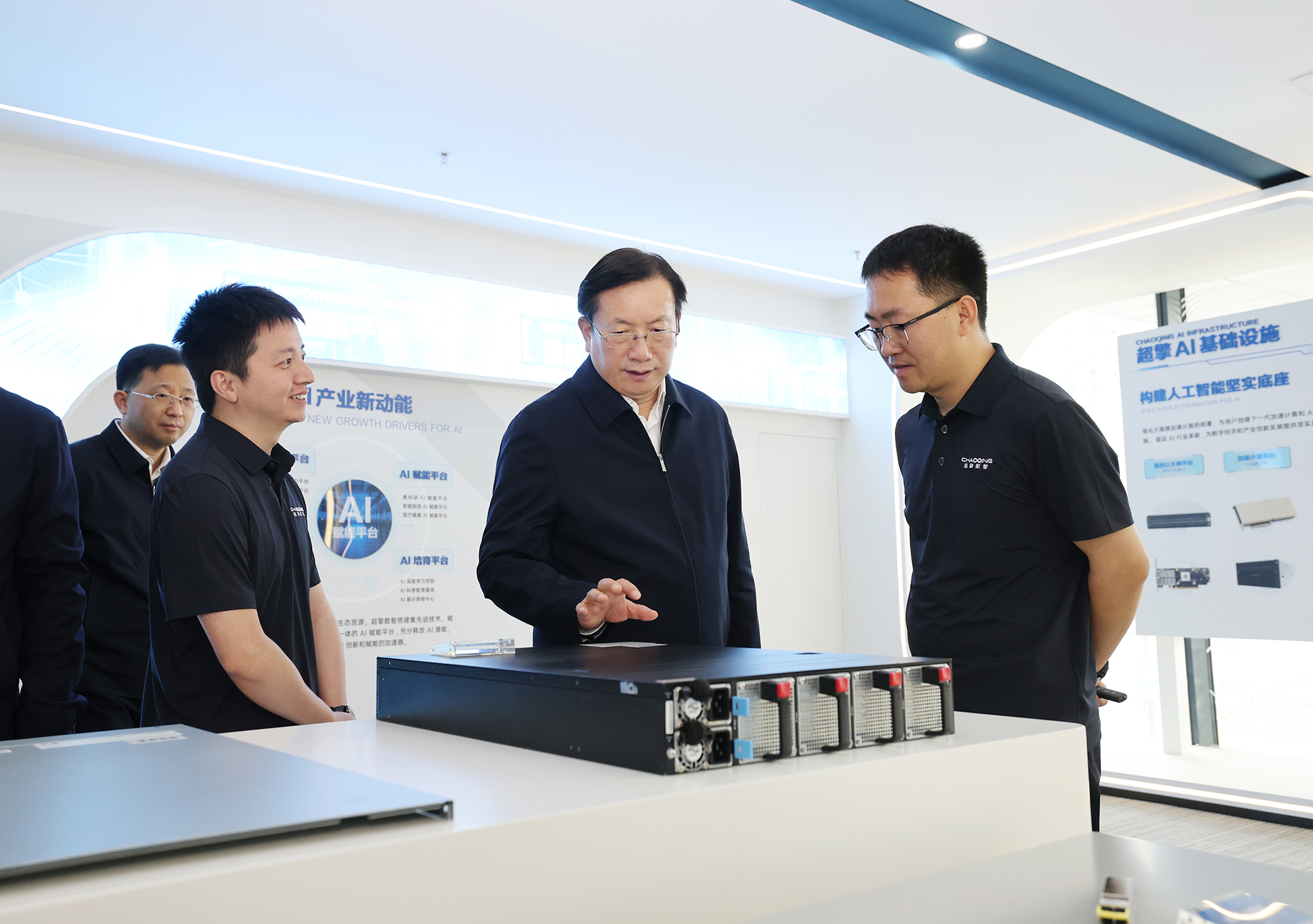 超擎数智科技有限公司是国内领先的人工智能整体方案提供商,其产品广泛应用于高性能计算、数据中心、教科研、生物医疗等行业与关键领域。王忠林与企业负责人亲切交流,察看企业核心产品展示,关切询问企业业务开展情况及有关意见建议,希望企业充分发挥技术、人才优势,与国内外合作伙伴积极共建应用生态,推动武汉总部做大做强。
