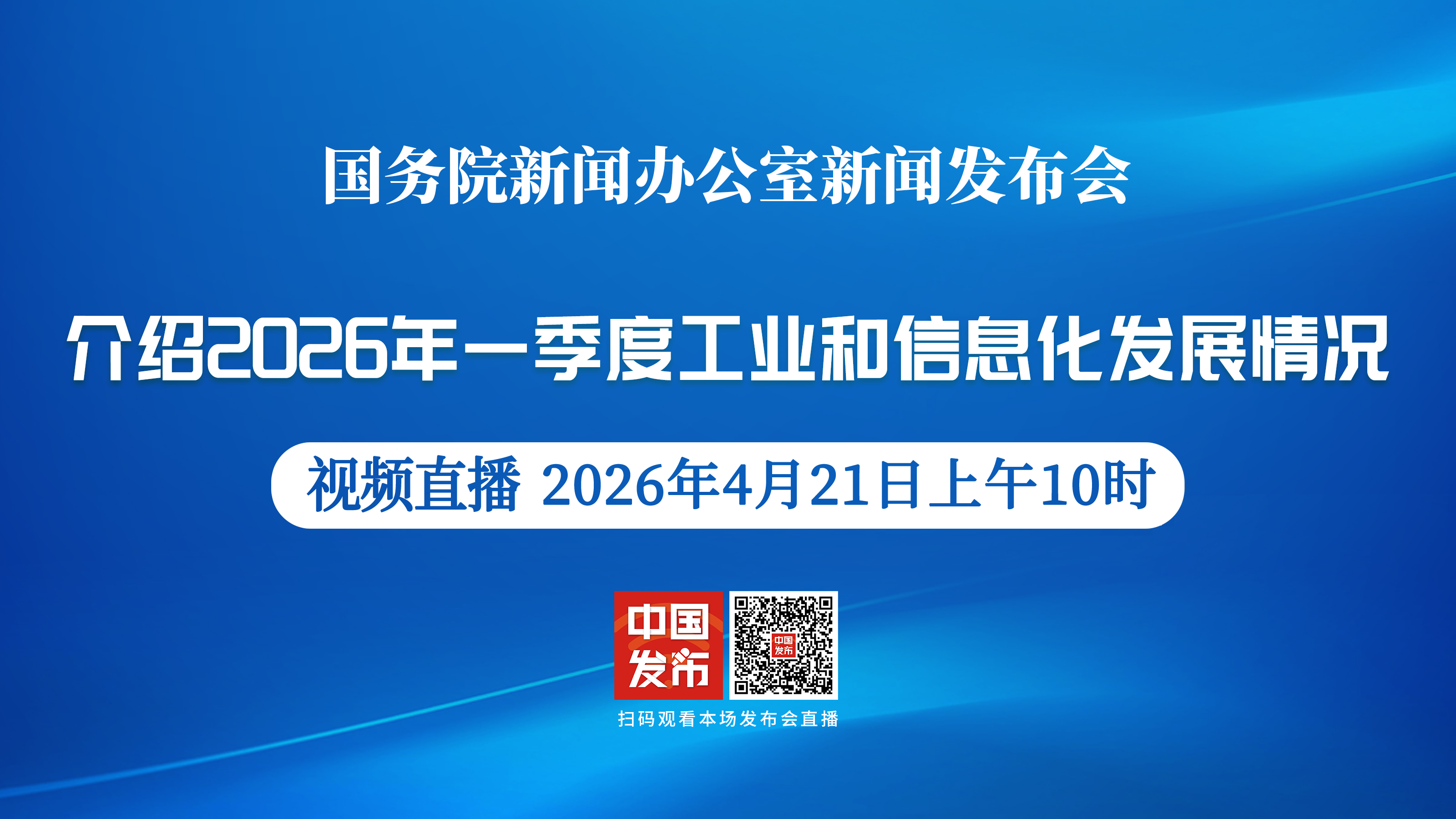 国务院新闻办公室于2026年4月21日(星期二)上午10时举行新闻发布会,请工业和信息化部副部长张云明介绍2026年一季度工业和信息化发展情况,并答记者问。