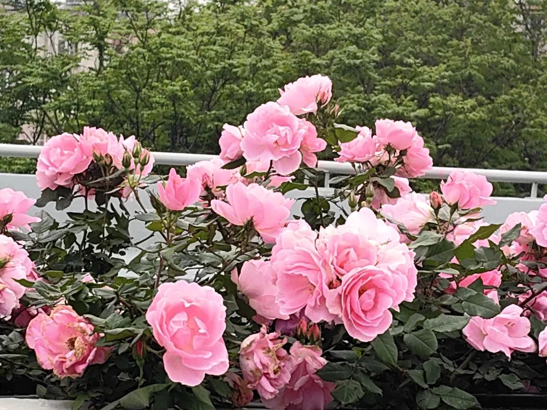 4月20日,市民郭女士驾车上班途经武汉大道金桥大道高架,发现中分带内的粉红色月季开爆了。“看到这些美丽的月季,很开心!”