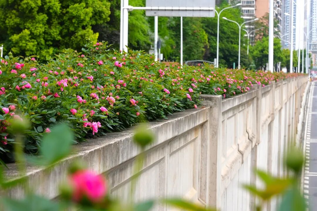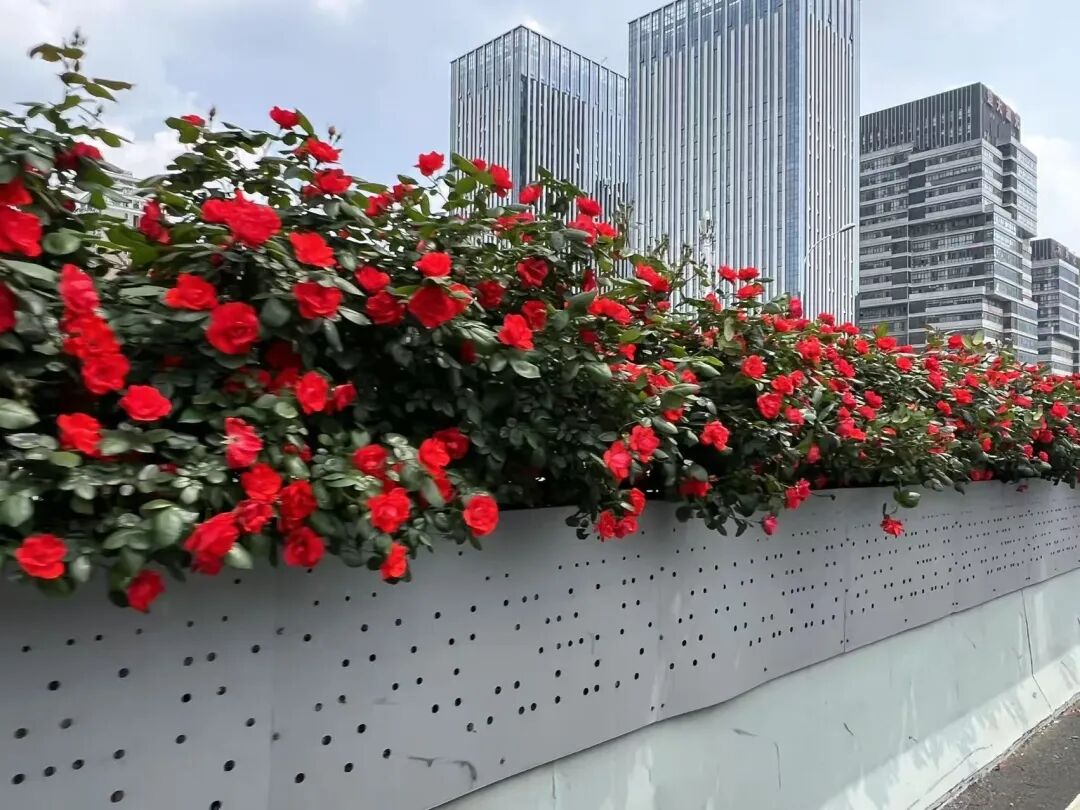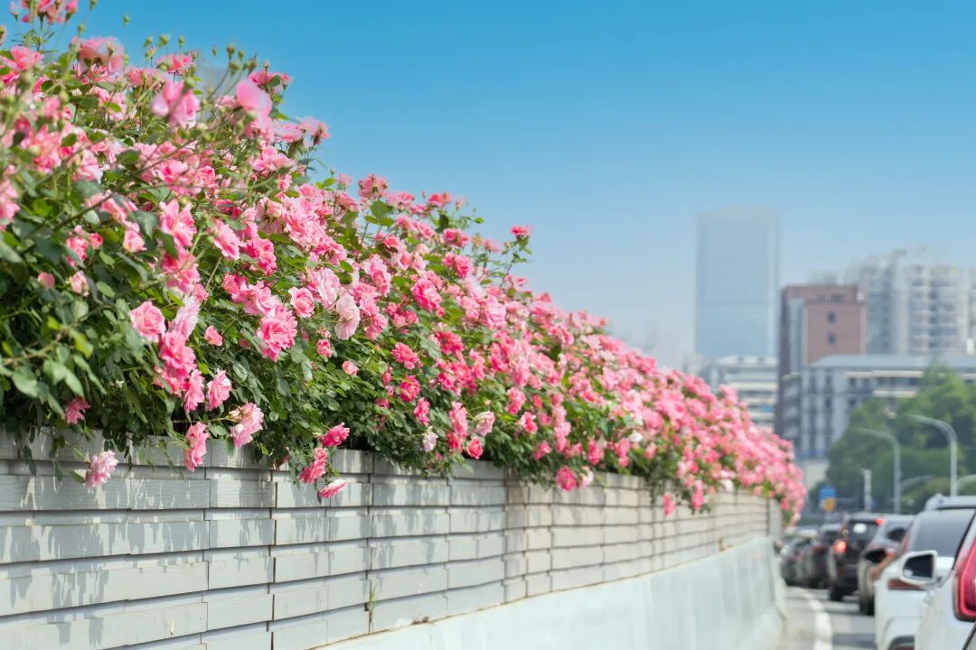 2017年以来,武汉在内环至三环线,武汉大道、珞狮路、白沙洲大道、机场二通道等城市道路,以及高架桥中分带大量种植月季,营造特色景观路。这些“月季花廊”不仅美化了环境,给市民带来美好的享受,还重塑了城市空间,使城市高架、地下通道端口等公共空间,面貌焕然一新。