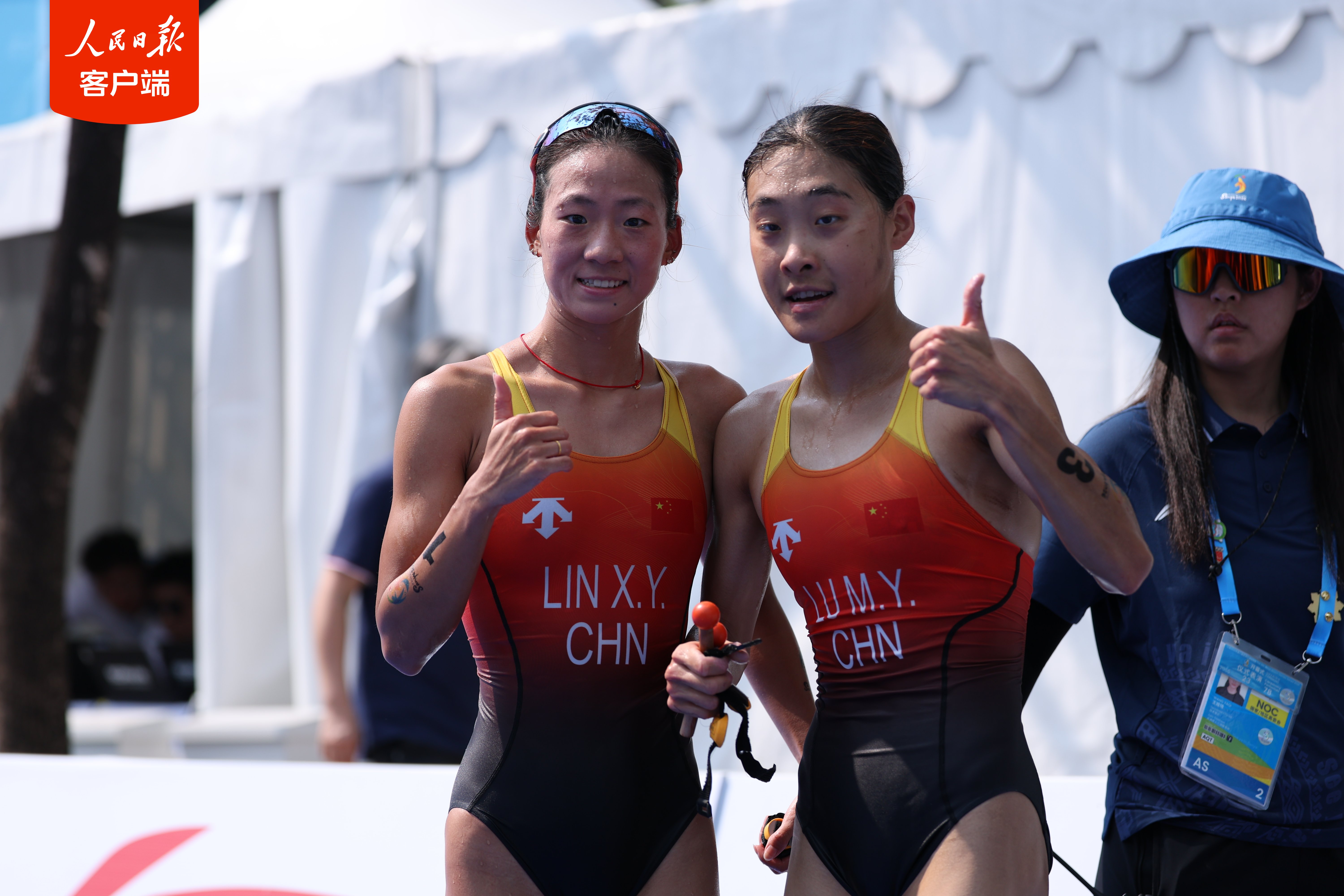 4月23日上午,在三亚亚沙会游跑两项女子个人比赛中,中国队选手林鑫瑜率先冲过终点线,夺得冠军,另一位中国队选手陆美伊摘得铜牌。中国体育代表团包揽本届亚沙会游跑两项个人比赛两枚金牌。