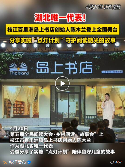 2025年4月,岛上书店搬进新址——一座改造后的废弃粮仓从“物质粮仓”变成了“精神粮仓”。藏书从1000余册增至4.5万余册,全镇儿童年均阅读量从0.8本跃升至4.5本。目前,以陈木兰和300多名乡村阅读推广志愿者,与210个新时代文明实践中心(所、站)、图书馆,200余家机关、企业、学校联动,共开展“乡村阅读”等各类文化活动600余场,已累计接待读者4万余人次。如今来看书的,有捧着绘本的孩子,也有农闲时读书看报的村民。每月主题读书分享会,还吸引了不少读者从外地辗转乘船渡江赶来。