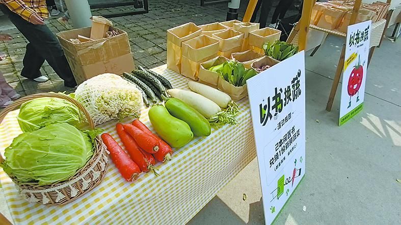 樊城朝晋门社区举办“以书换蔬”活动 通讯员衡梦函 摄
