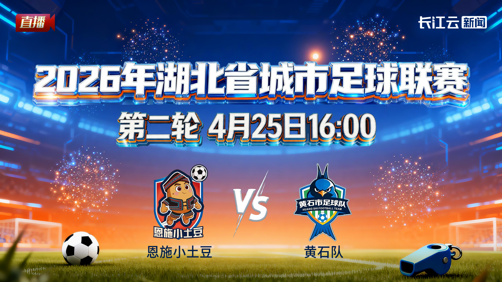 2026年湖北省城市足球联赛(“楚超”)第二轮——恩施队主场迎战黄石队的比赛,将于4月25日16:00在恩施市体育中心打响,长江云新闻将全程直播本场对决。