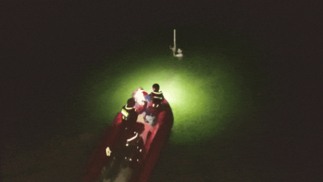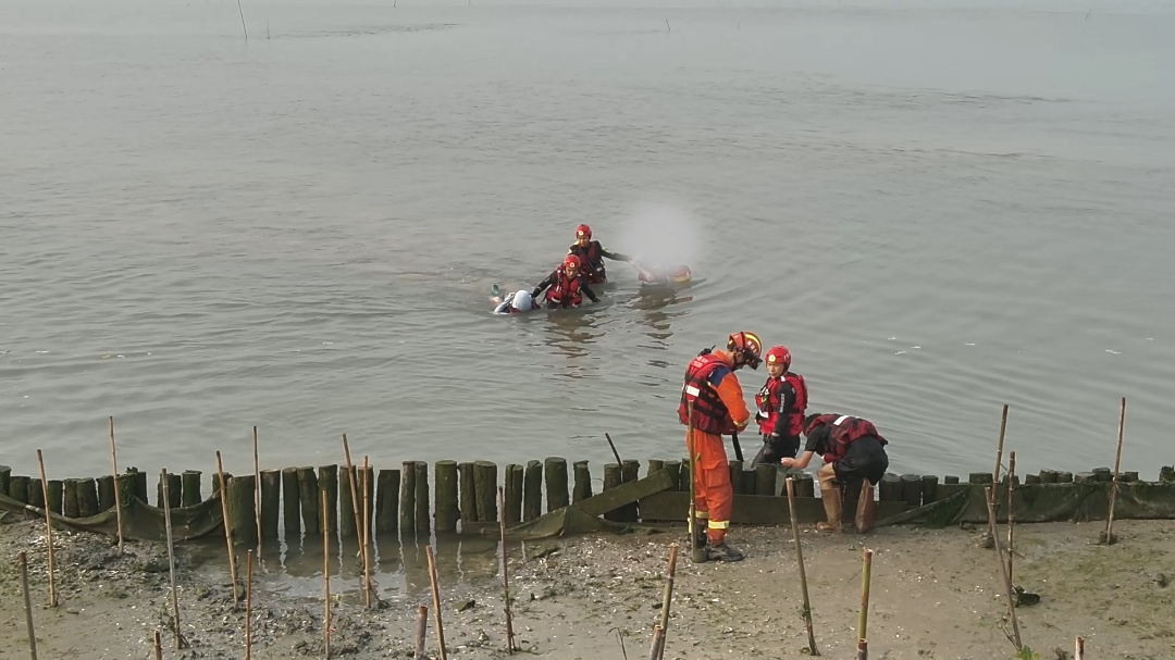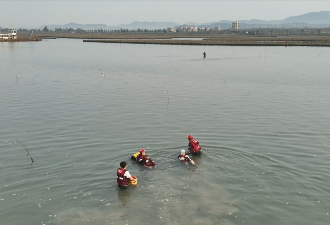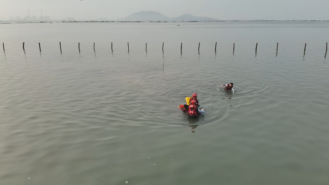 福建泉州,一男子在退潮后下海抓螃蟹,结果突遇涨潮被困。消防员接警后立即到场,驾驶橡皮艇将男子转移至安全区域。