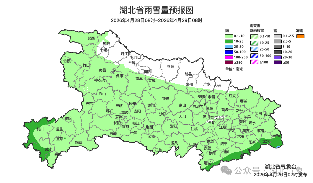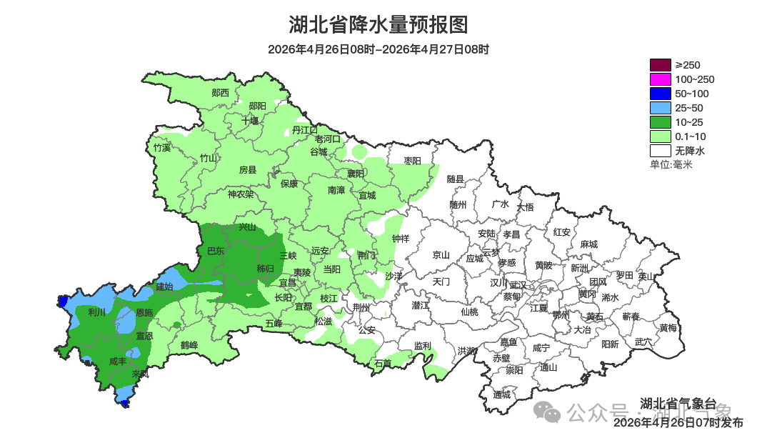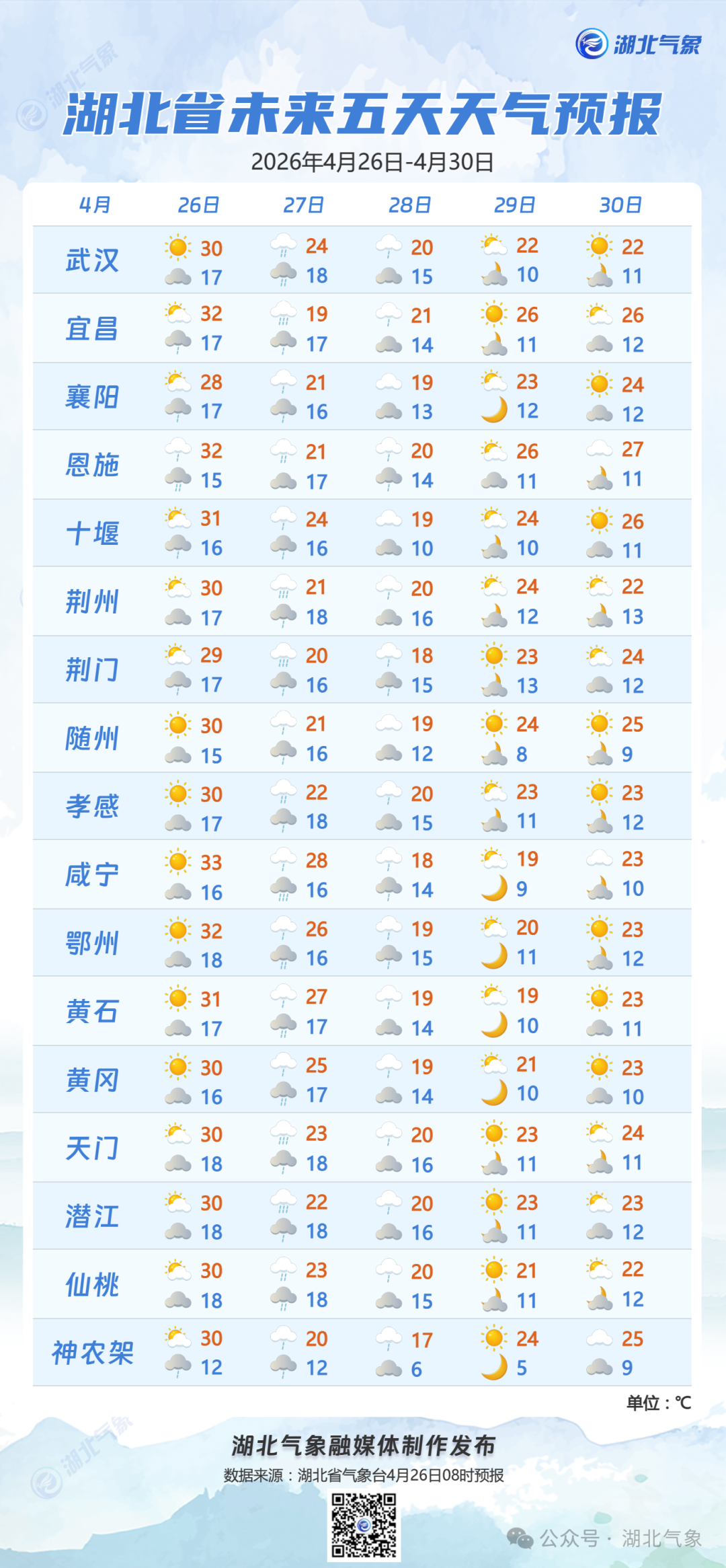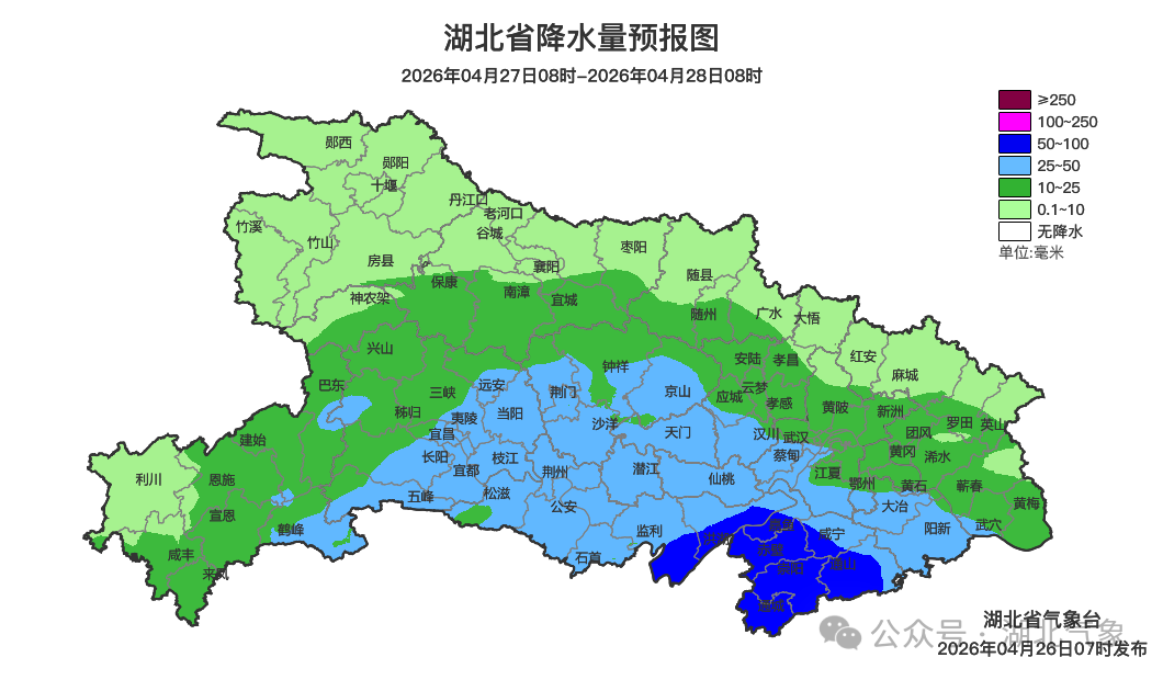 预报来源:湖北省气象台2026年4月26日08时预报