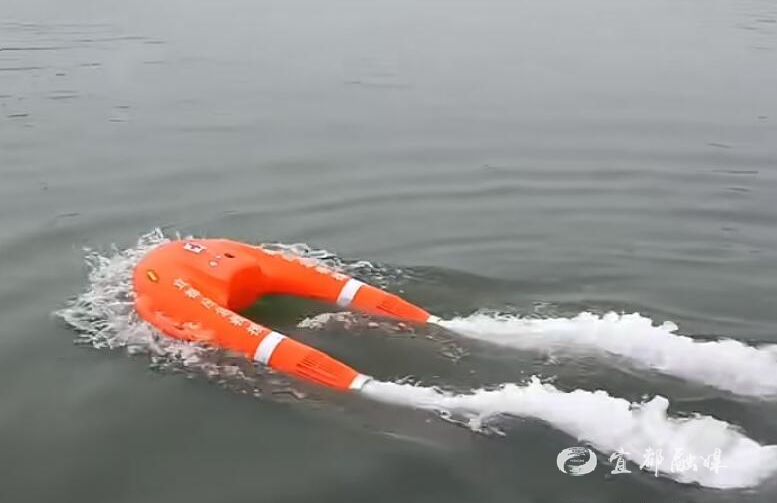 “这款水域救援机器人每分钟可以在水上行进400米,最大续航时间为60分钟、最大遥控范围为1.5公里、最大推拽重量为500公斤,还能设置一键自动返航。当落水者看到水域救援机器人时,抓住机器人的把手,或趴在机器人身上就行了。”宜都市红十字水上救护志愿服务队副队长余万金表示。