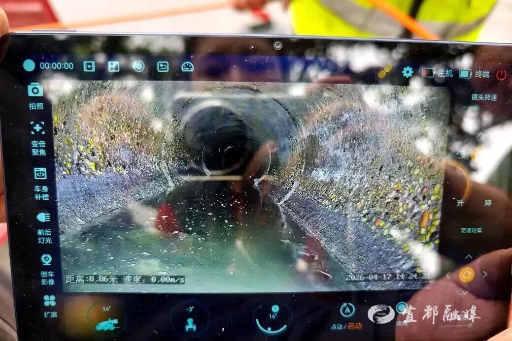 行动中,作业人员采用管道CCTV检测机器人,它像一根“智能内窥镜”,能搭载着高清摄像设备钻进地下管网里,深入管道内部,实时传输影像画面,清晰捕捉管壁破损、管道淤积、接口错位、树根侵入等各类隐蔽病害。