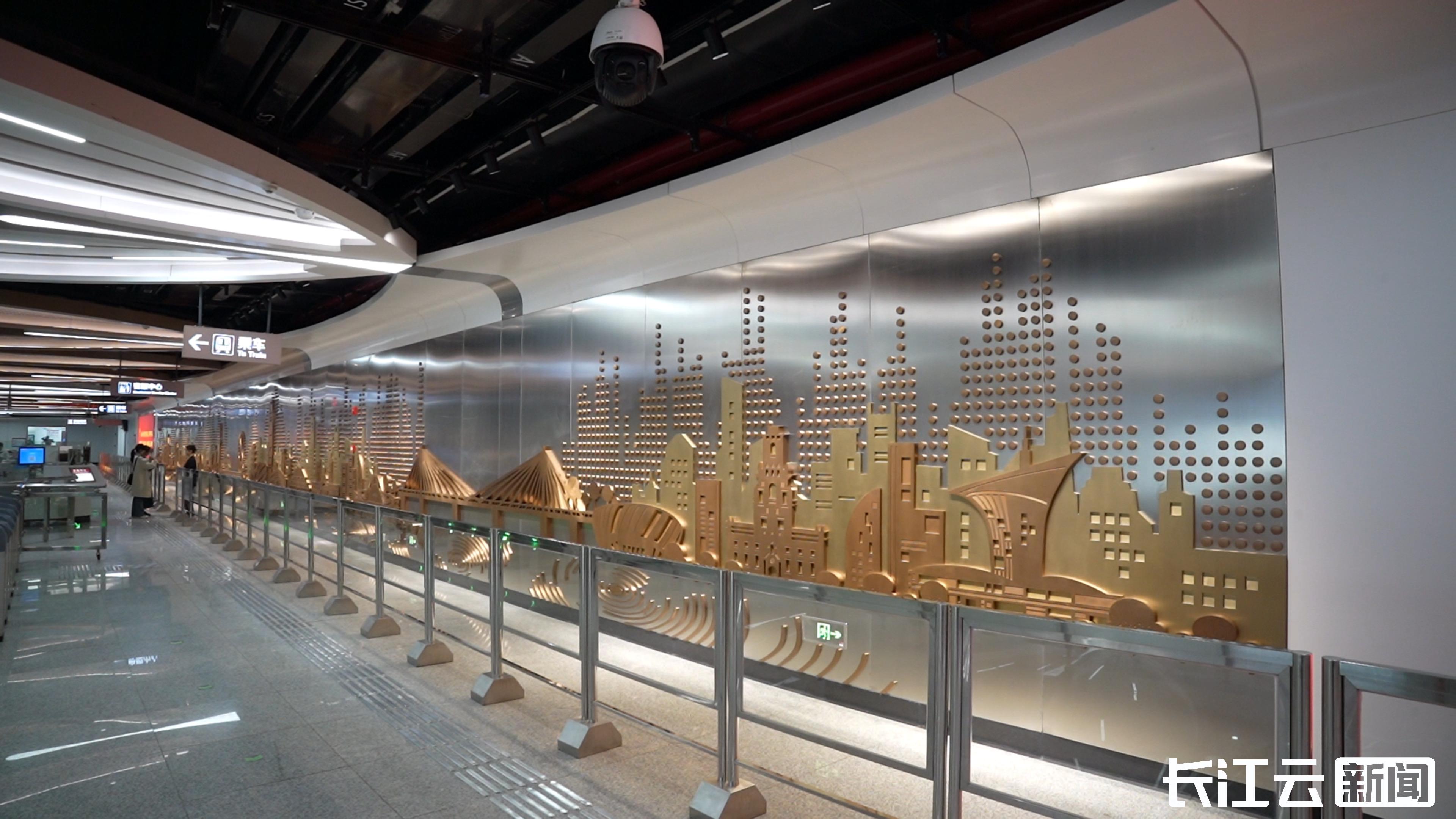 艺术品以“像素都市”为艺术设计主题,综合运用材质语言、视觉符号与空间意象,将水元素、现代材质与城市意象有机融合,在交通枢纽空间整体呈现长江文化的地域特征、精神内涵与时代价值。作品以长江水韵为地域根脉,通过水波纹与地图元素串联城市自然风貌与现代化场景,彰显两江交汇的独特文脉与和谐共生的自然观。运用玫瑰金与哑光金属打造简约时尚质感,以像素化建筑形态展现城市现代化风貌。开通后,该站将成为分流楚河汉街客流、激活周边商圈与景区联动的重要节点。