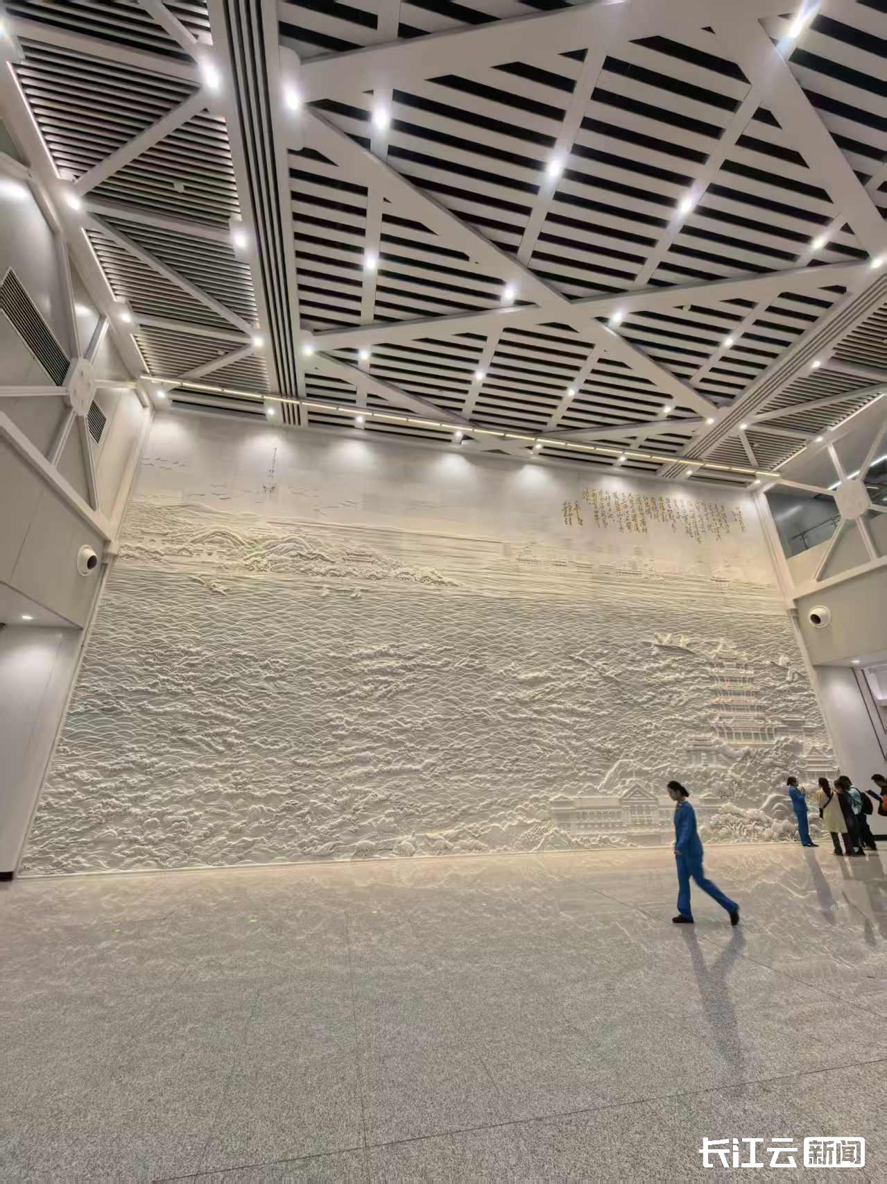 艺术品以“时空交响·上下求索”为艺术设计主题,采用“万里长江第一桥”为载体,彰显“一桥飞架南北,天堑变通途”的宏伟气魄,定格新中国首座公铁两用长江大桥的国家建设成就与地标意义。将长江文化的物质形态、历史厚度与精神内涵融入站厅,让交通枢纽兼具城市功能与长江文化展示传承功能。