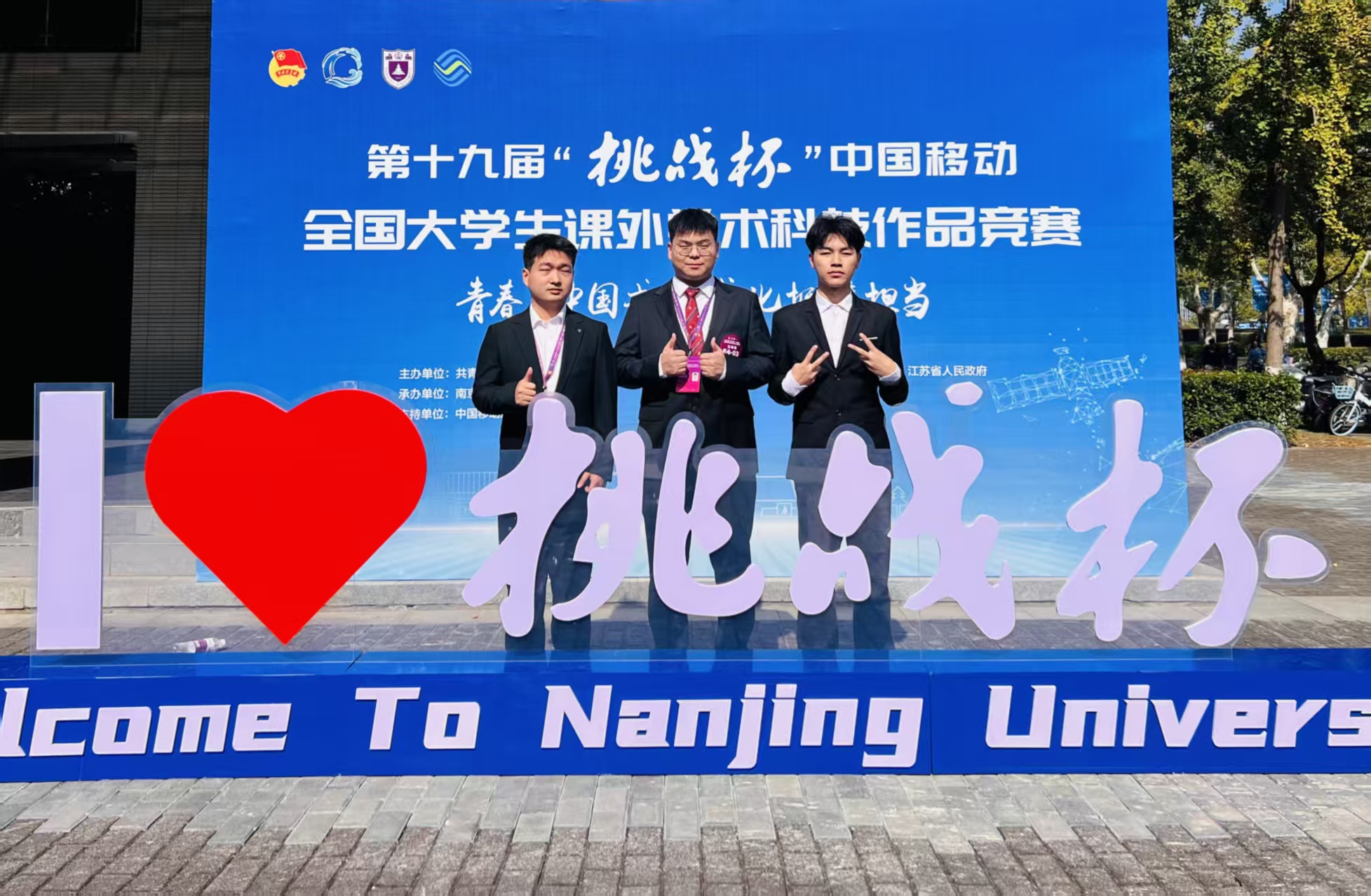 李皓辰(中)牵头带领团队获得“挑战杯”一等奖